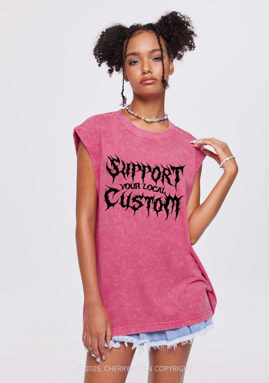 Custom Support Your Local Y2K Washed Muscle Tank Cherrykitten