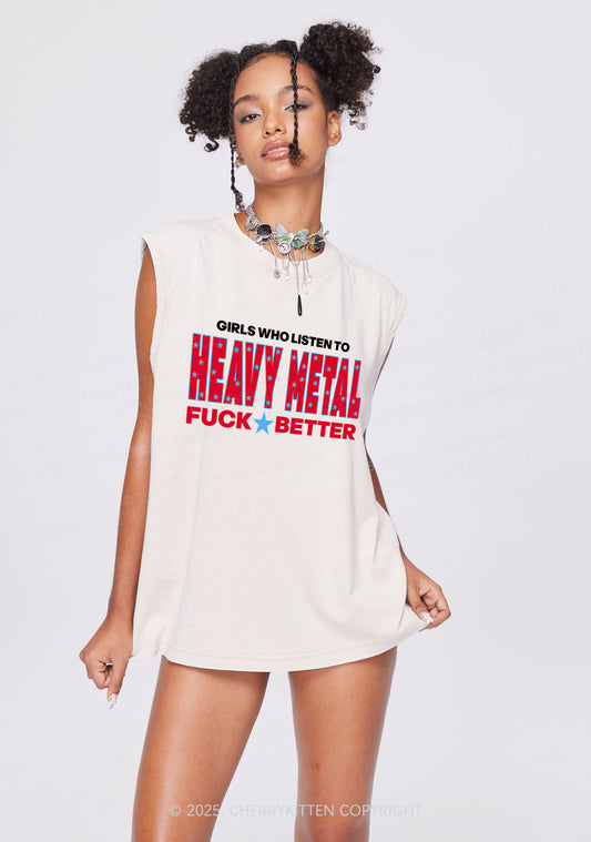 Girls Listen Heavy Metal Y2K Washed Muscle Tank Cherrykitten