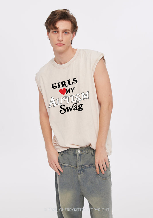 Girls Love Autism Swag Y2K Washed Muscle Tank Cherrykitten