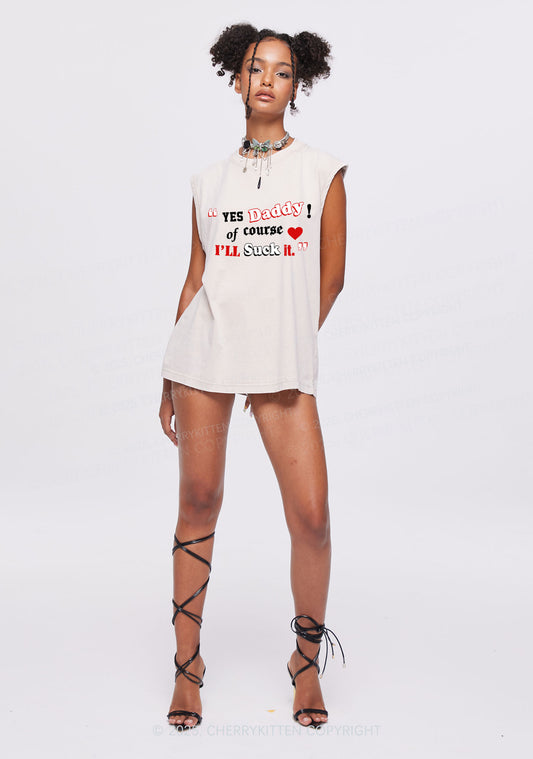 Daddy Suck It Y2K Washed Muscle Tank Cherrykitten