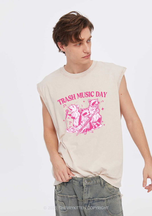 Trash Music Day Y2K Washed Muscle Tank Cherrykitten