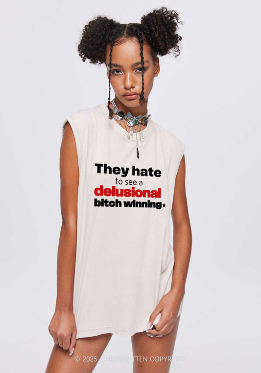 Delusional Bxtch Winning Y2K Washed Muscle Tank Cherrykitten