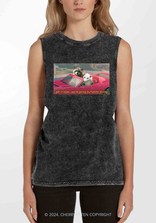 Funny Raccoon Y2K Washed Tank Cherrykitten
