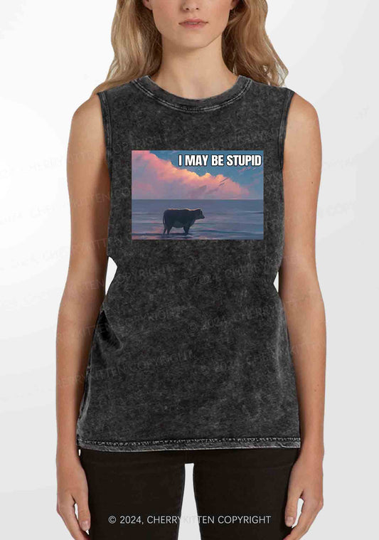 I May Be Stupid Meme Y2K Washed Tank Cherrykitten