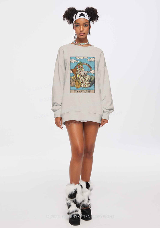The Cat Lady Y2K Washed Sweatshirts Cherrykitten