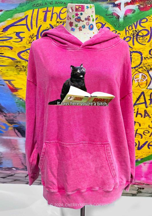 It Says Here You're A Bixxh Y2K Washed Hoodie Cherrykitten