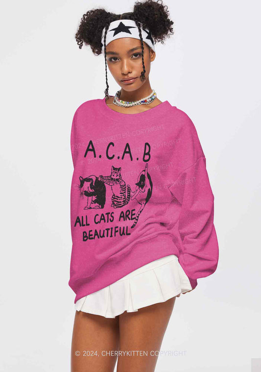 ACAB Cats Y2K Washed Sweatshirts Cherrykitten