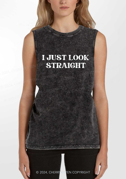 I Just Look Straight Y2K Washed Tank Cherrykitten