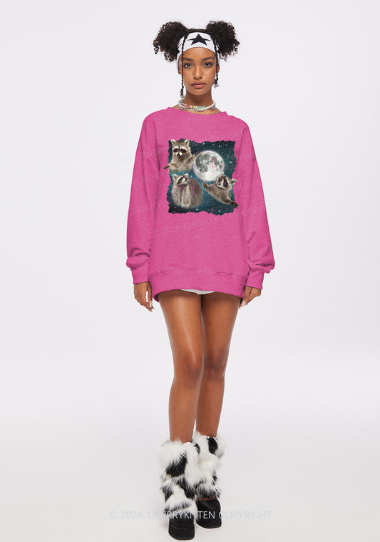 Raccoon Moon Y2K Washed Sweatshirts Cherrykitten