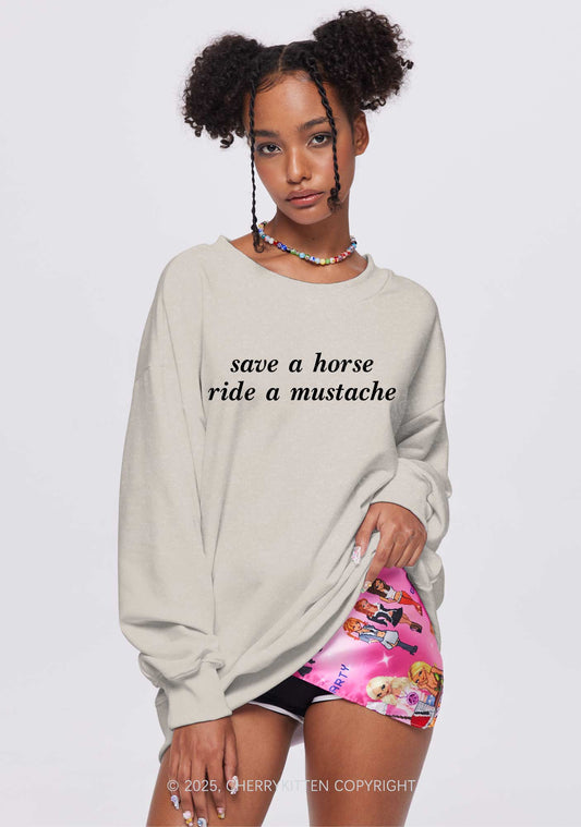 Ride A Mustache Y2K Washed Sweatshirts Cherrykitten