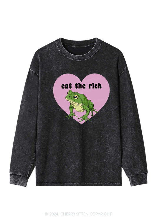 Eat The Rich Frog Y2K Washed Long Sleeves Cherrykitten