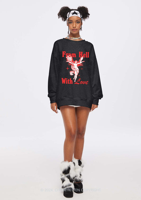 From Hell With Love Y2K Washed Sweatshirts Cherrykitten
