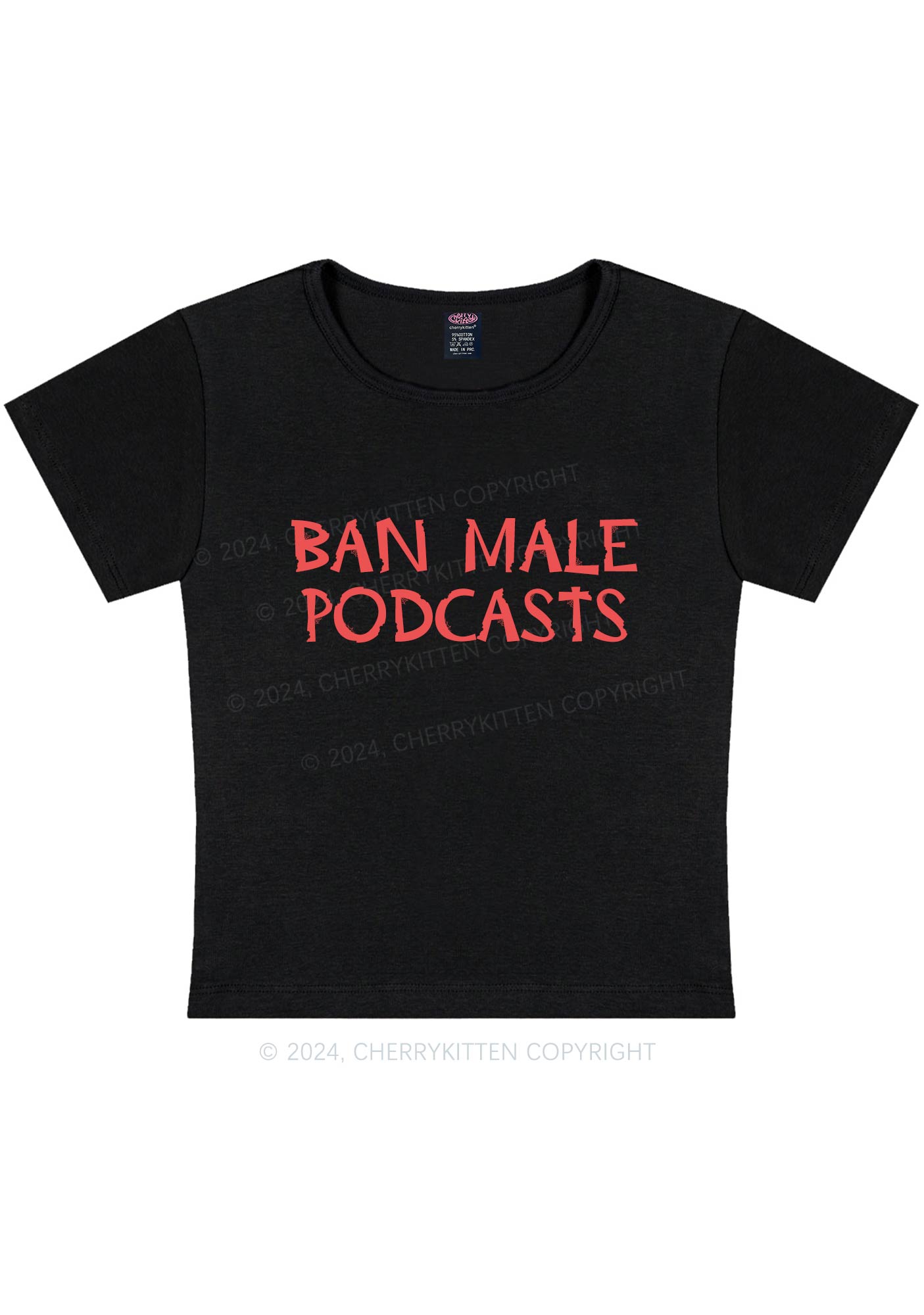 Ban Male Podcasts Y2K Baby Tee Cherrykitten