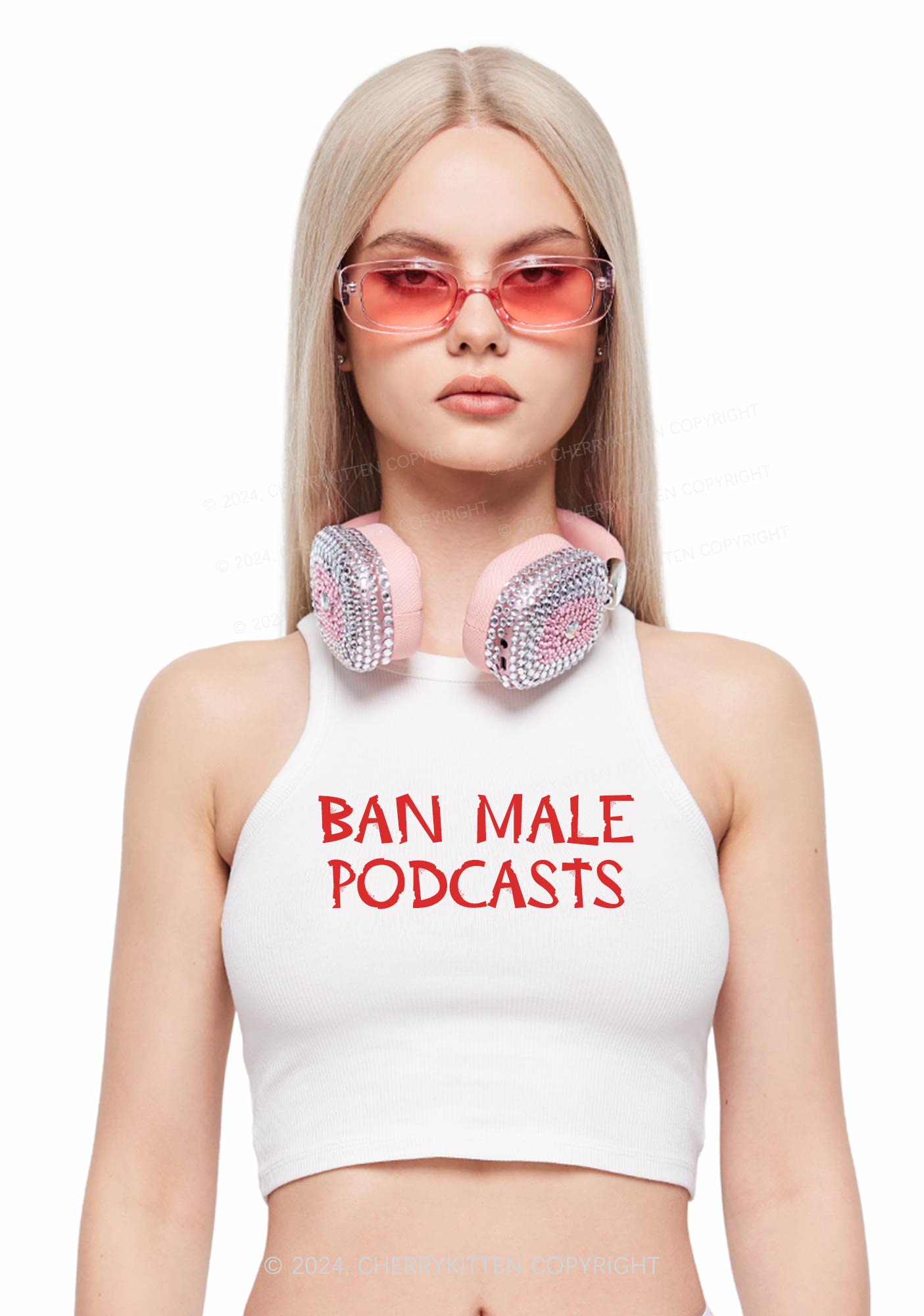 Ban Male Podcasts Y2K Crop Tank Top Cherrykitten