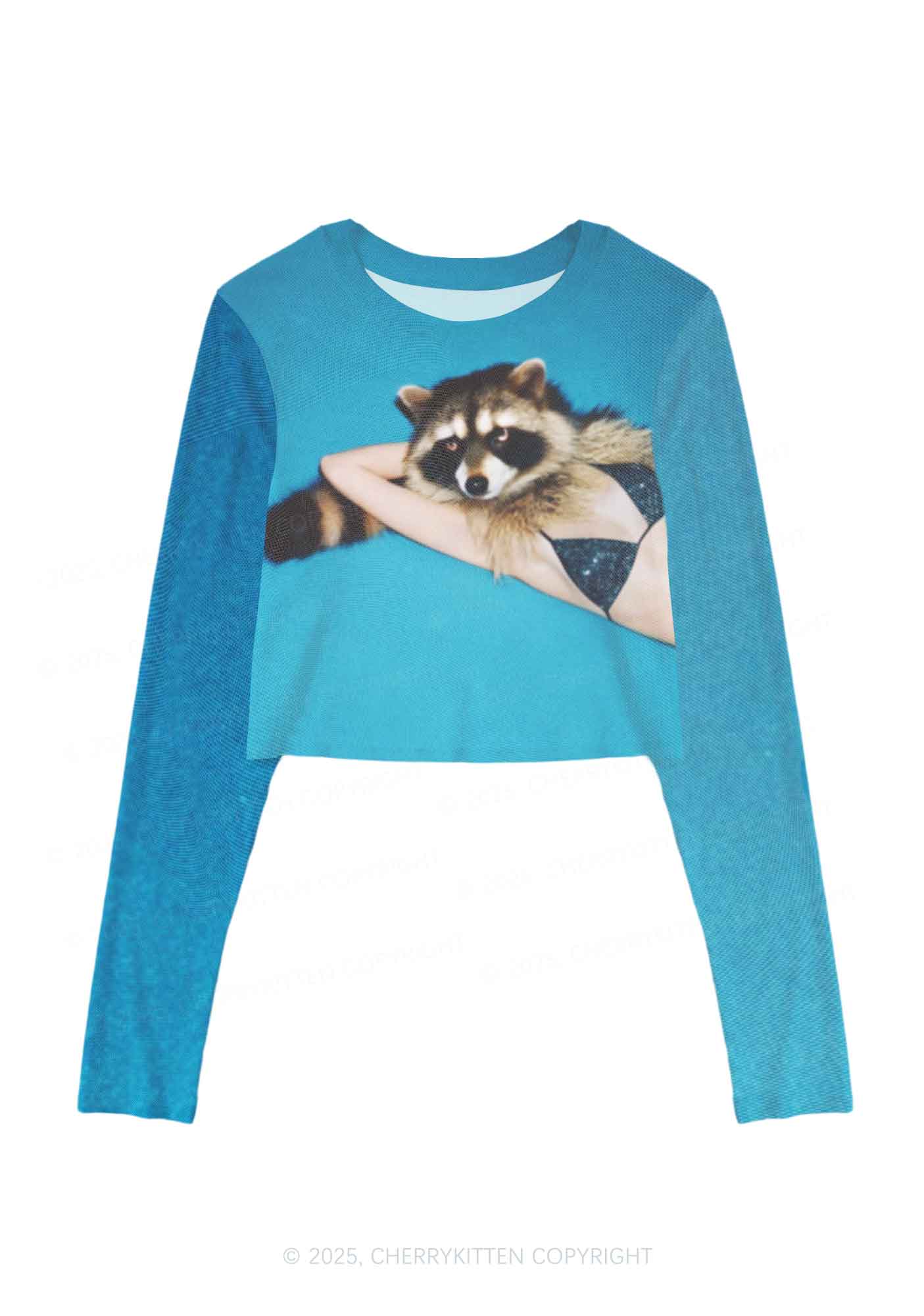 Bikini Raccoon Y2K Mesh Long Sleeve Crop Top Cherrykitten