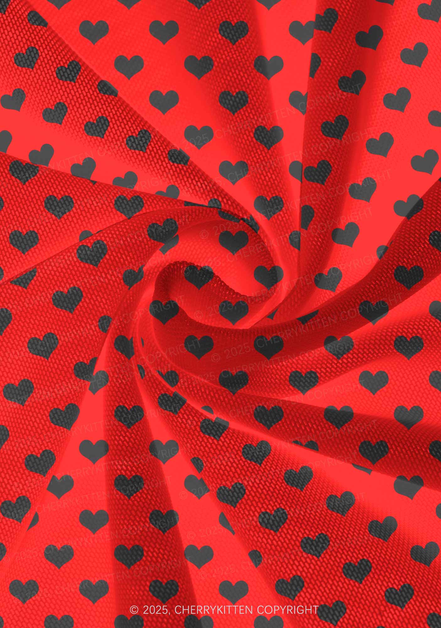 Black Heart On Red Valentine's Day Y2K Print Mini Layered Skirt Cherrykitten