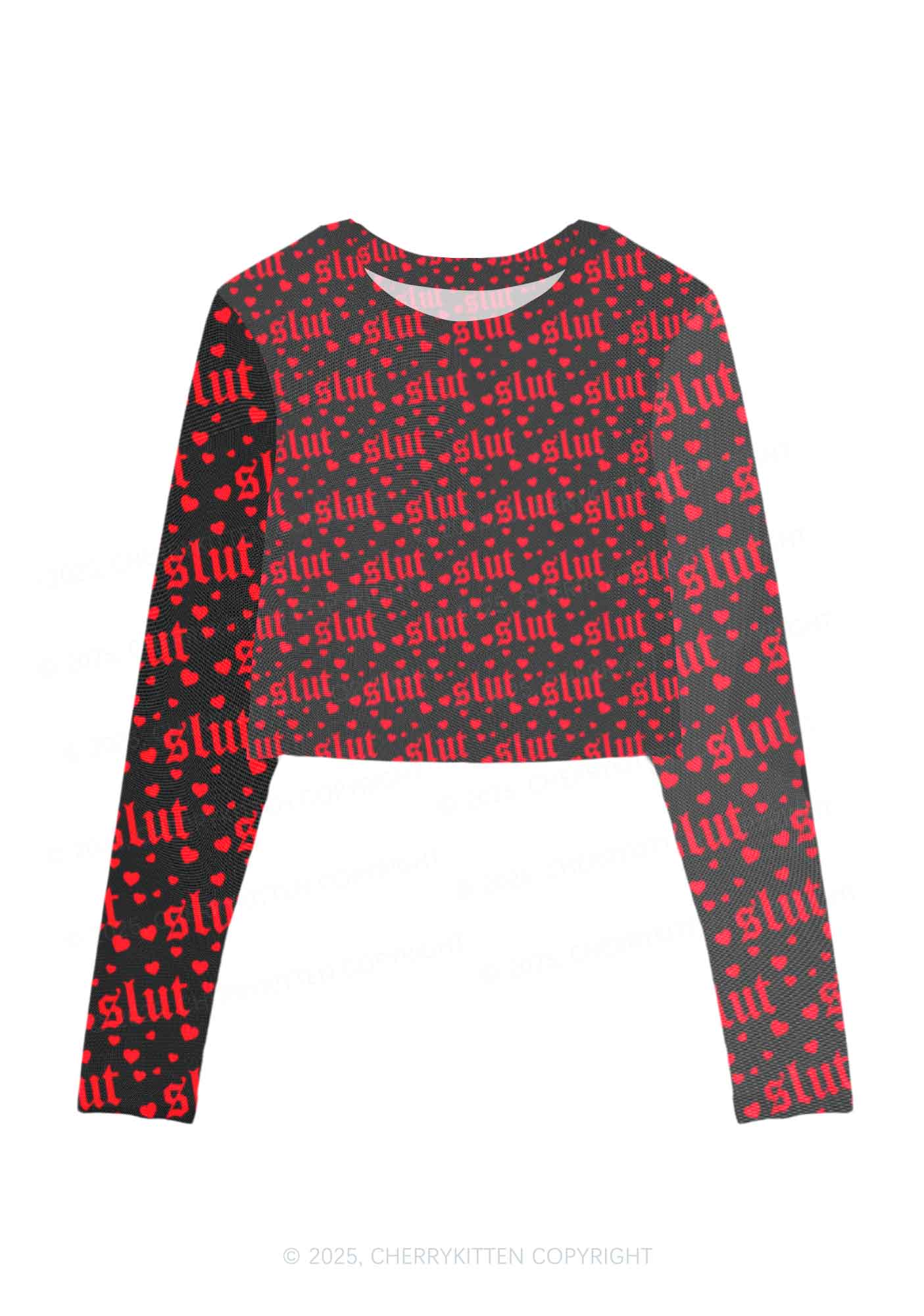 Black Slxt Y2K Mesh Long Sleeve Crop Top Cherrykitten