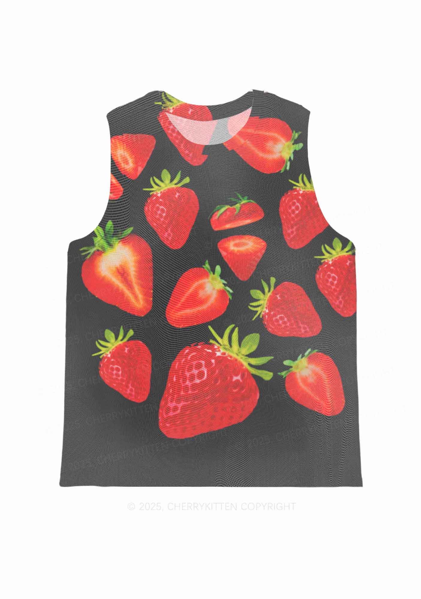 Black Strawberry Y2K Mesh Muscle Tank Cherrykitten