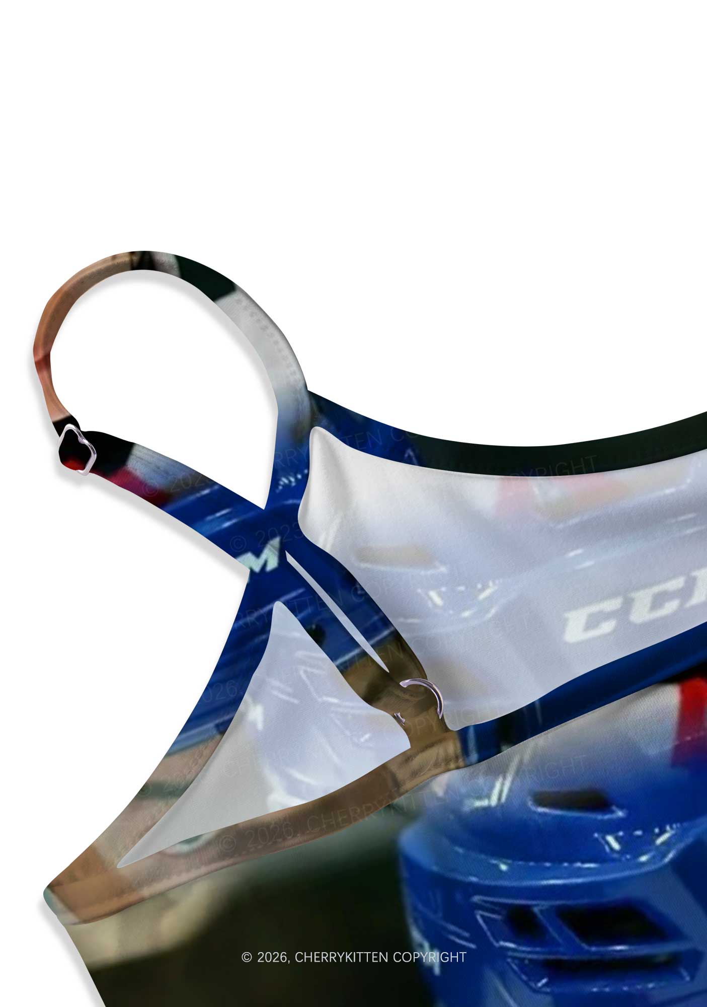 Blue And White Hockey Shirt HR Y2K Print Cami Crop Top Cherrykitten