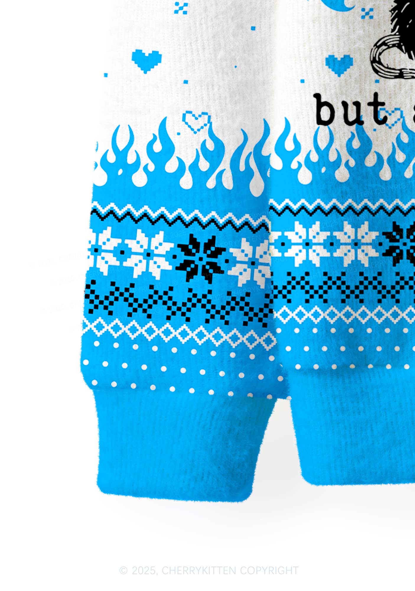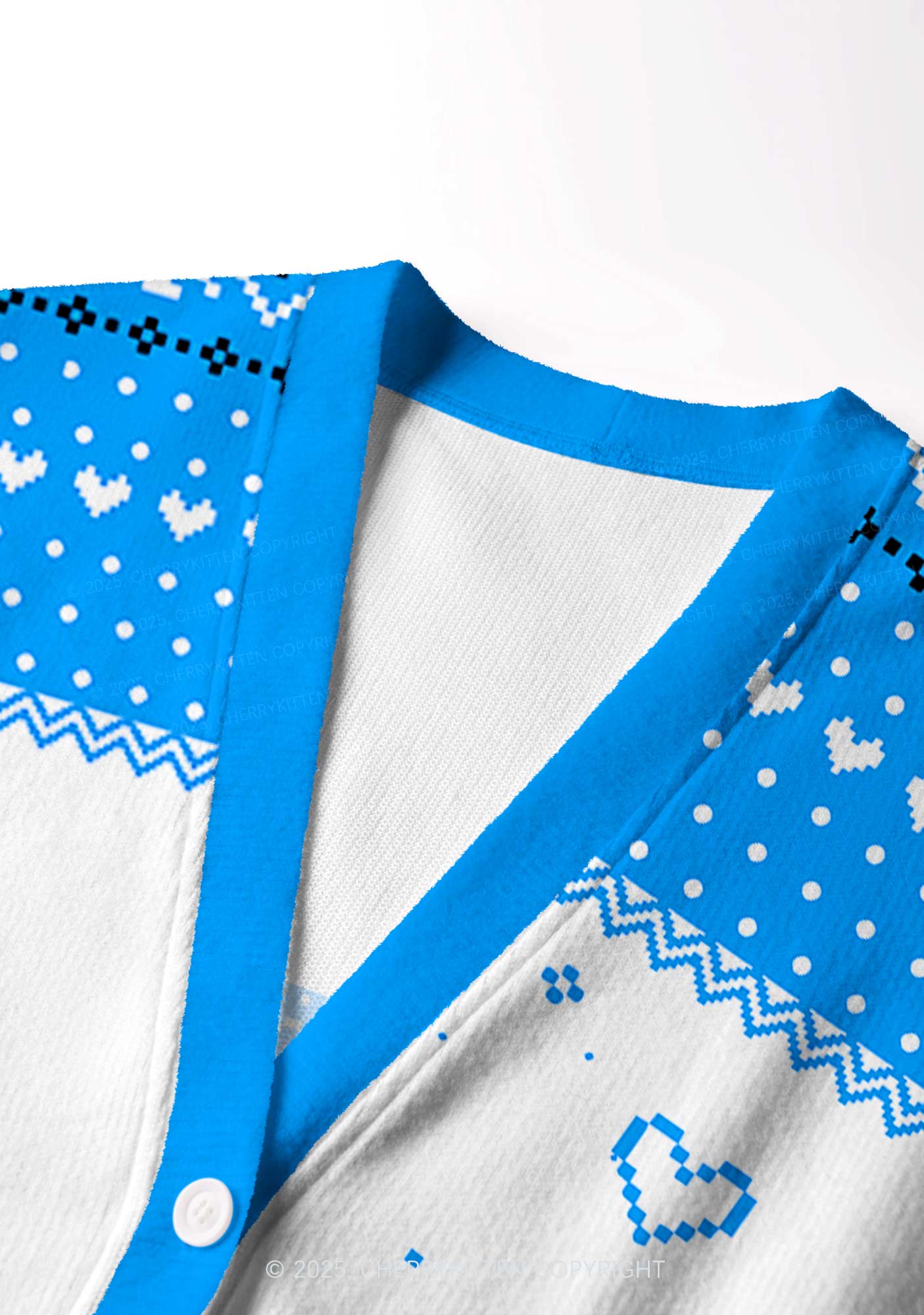 Blue Awake But What Cost Y2K Christmas Cardigan Knit Sweatshirt Cherrykitten
