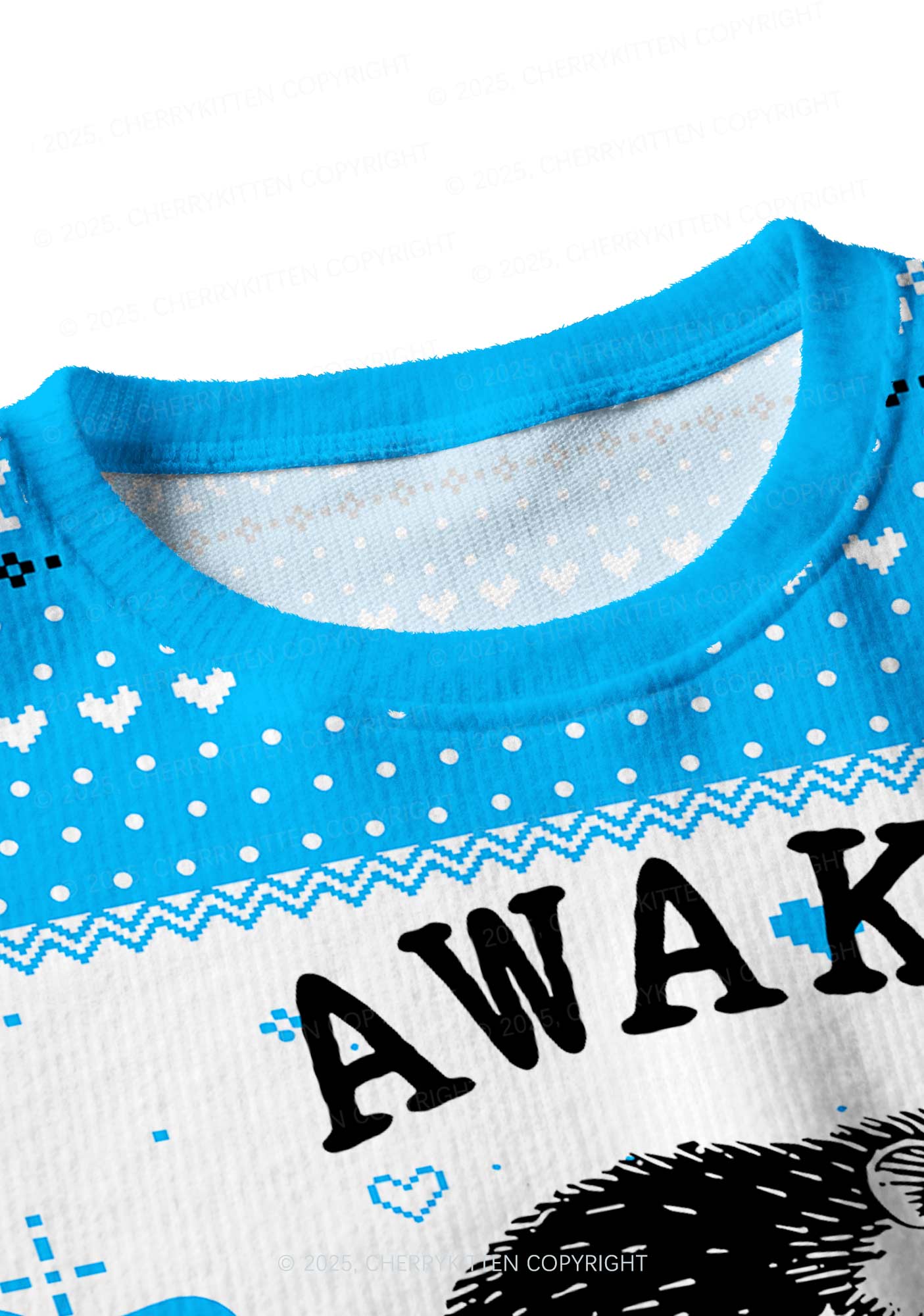 Blue Awake But What Cost Y2K Christmas Crop Knit Sweatshirt Cherrykitten