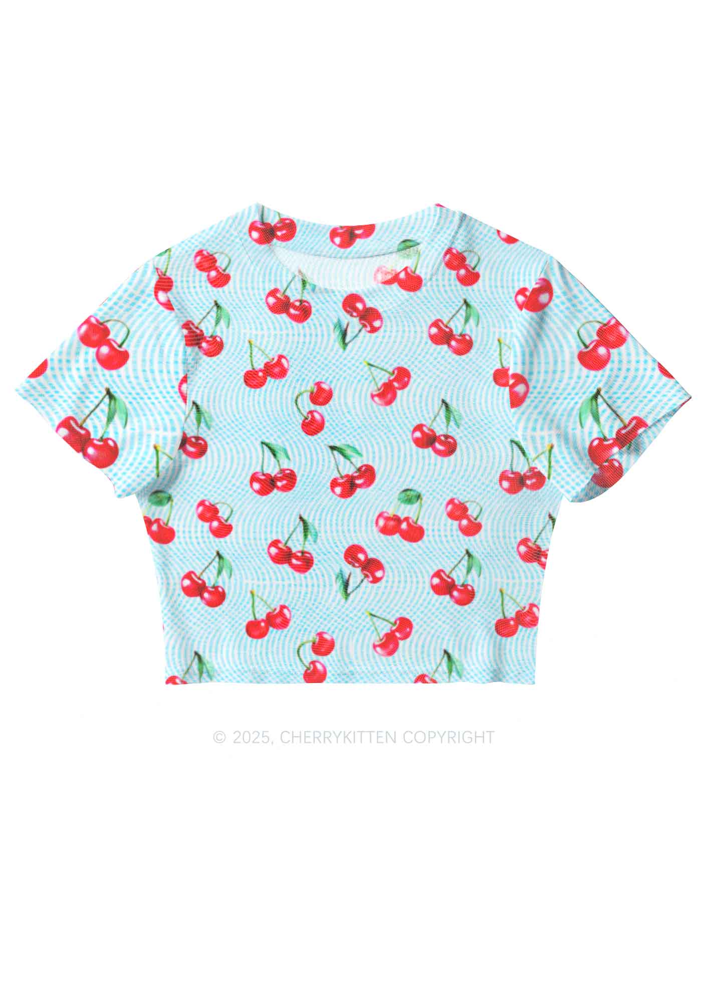 Blue Cherry Y2K Mesh Crop Top Cherrykitten