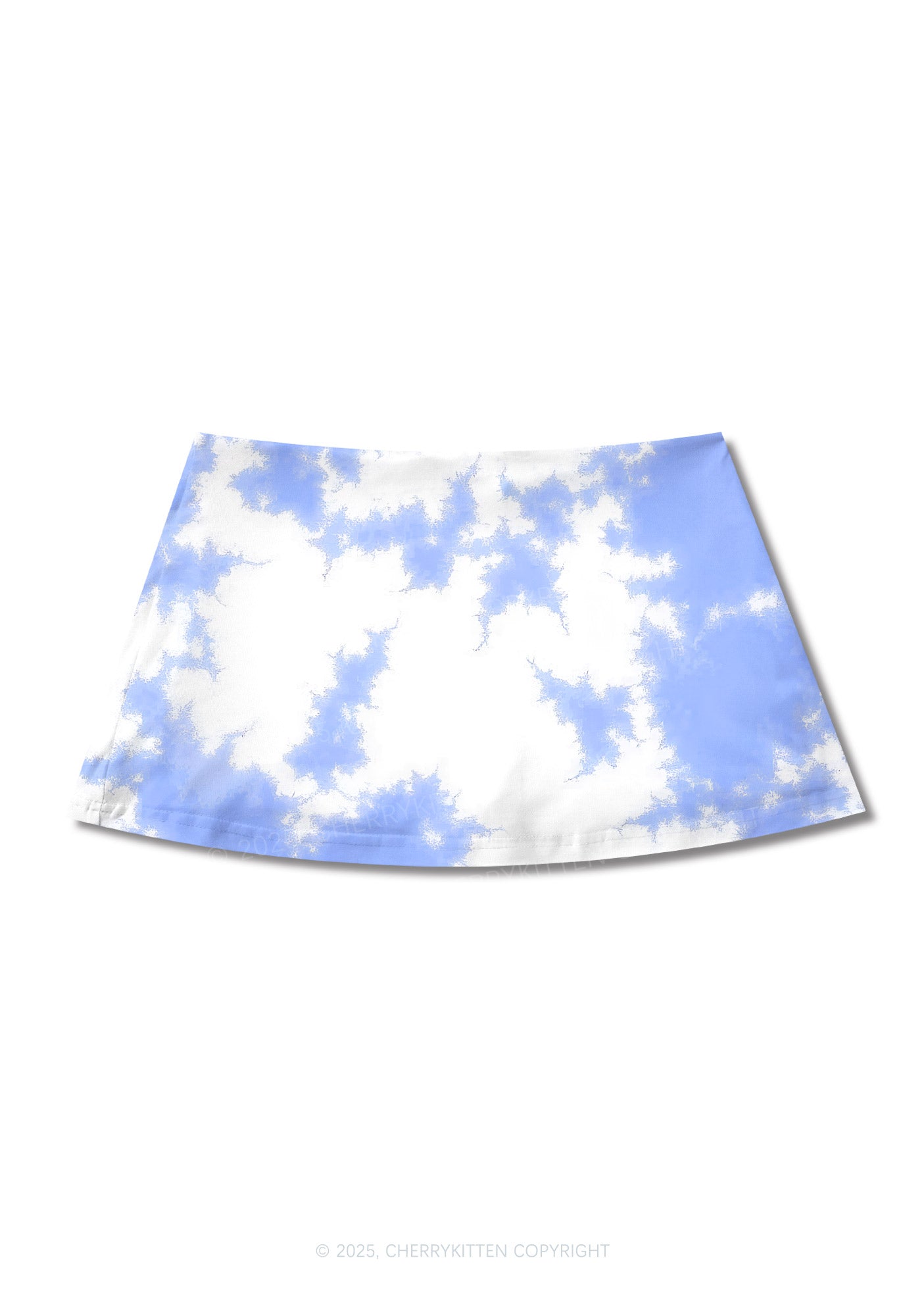 Blue Sky White Clouds Y2K Print Mini Skirt Cherrykitten