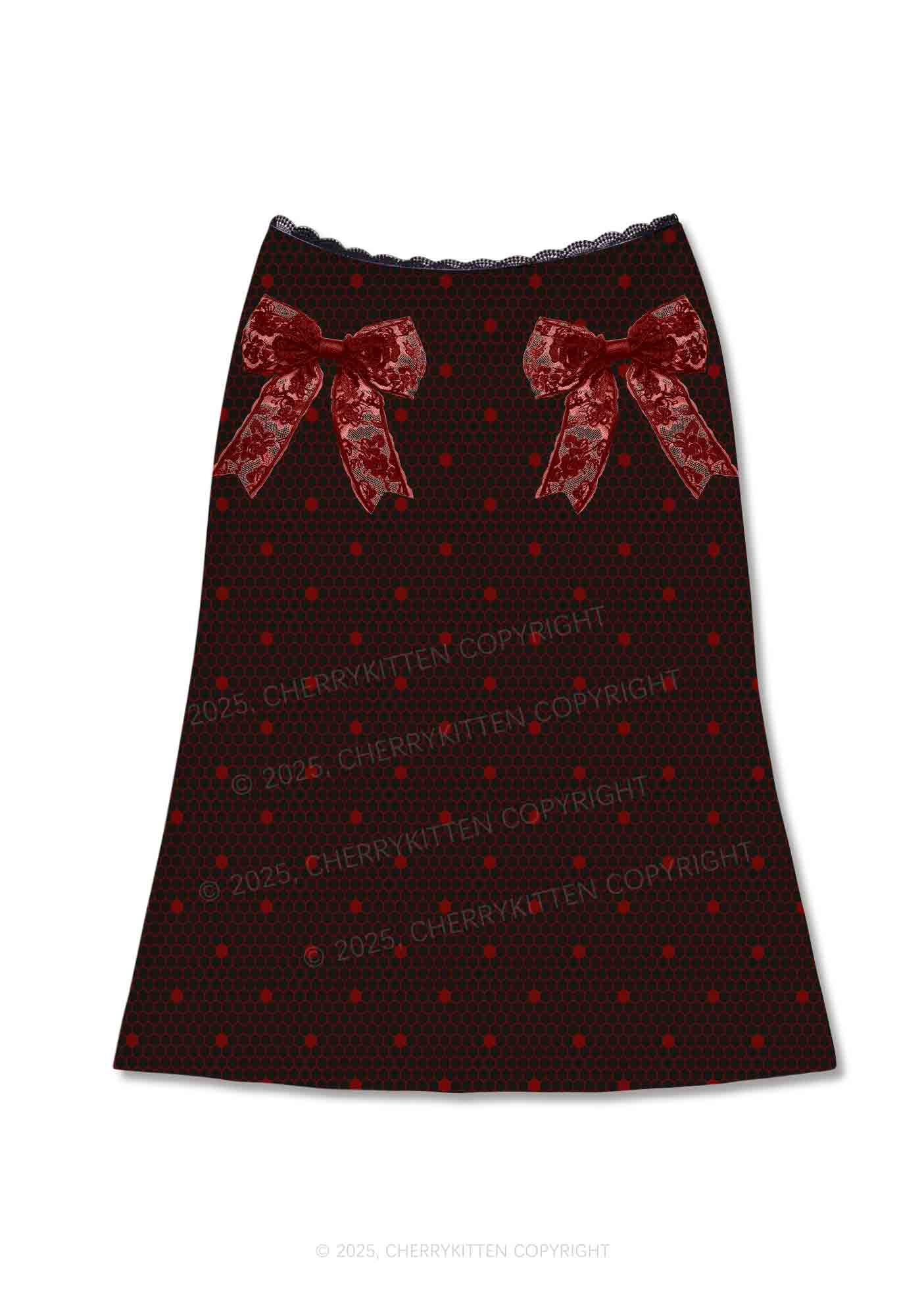 Bow Ties Y2K Print Midi Skirt Cherrykitten