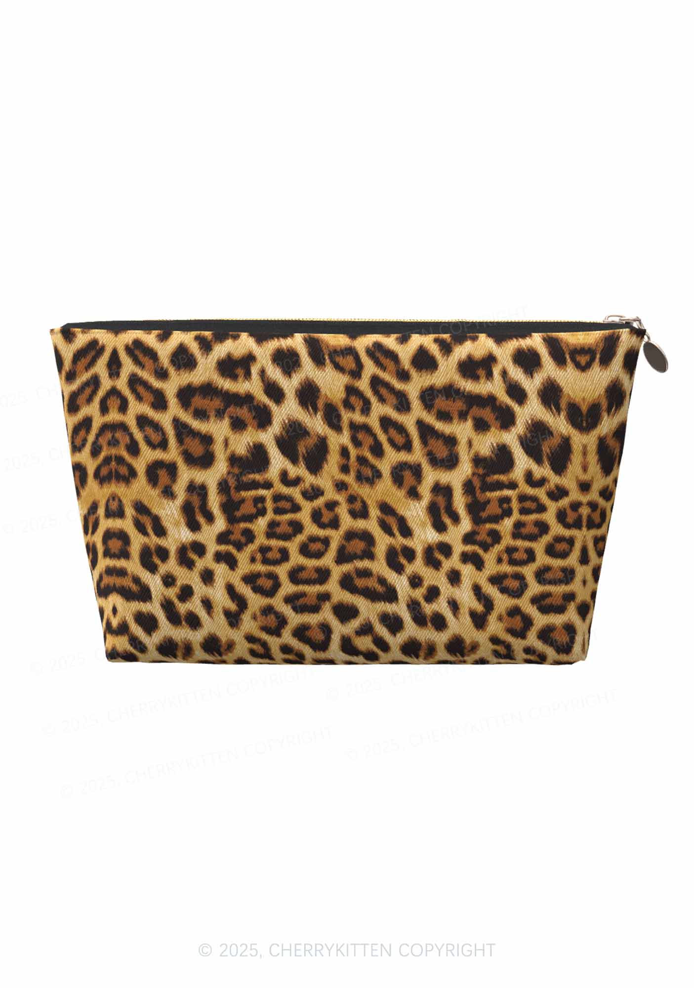 Brown Leopard Y2K Leather Makeup Bag Cherrykitten