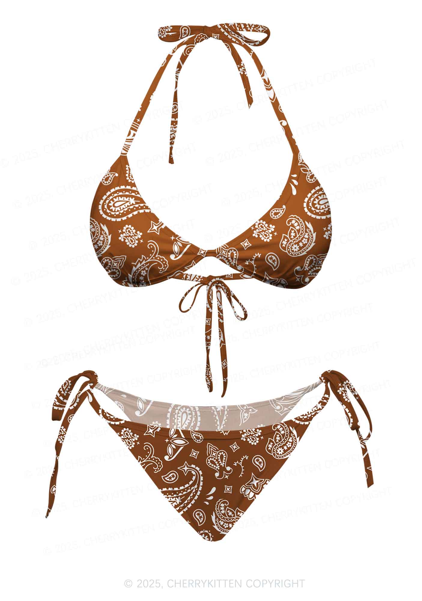 Brown Paisley Y2K Print Bikini Set Cherrykitten
