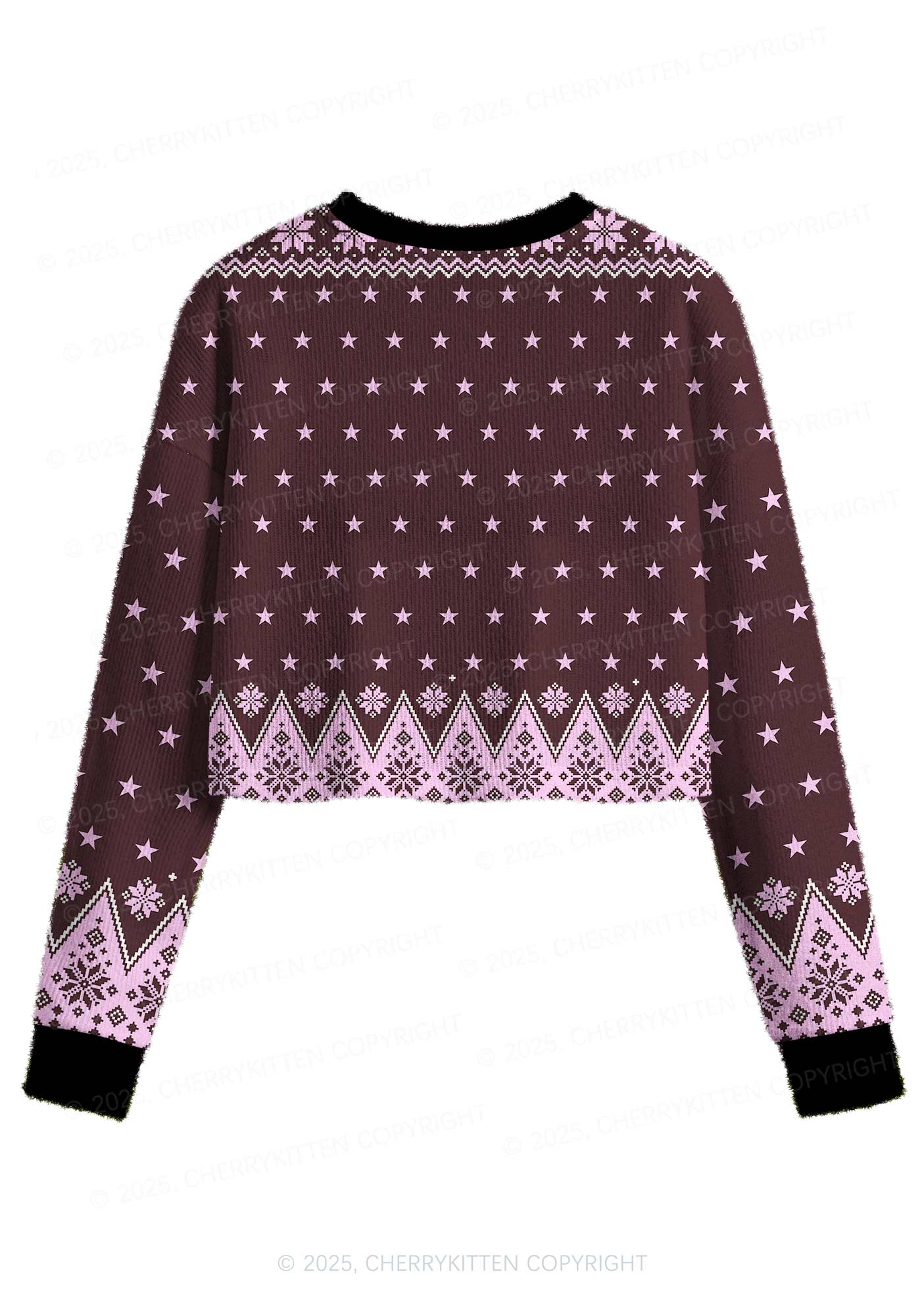 Brown Smoking Rats Y2K Christmas Crop Knit Sweatshirt Cherrykitten