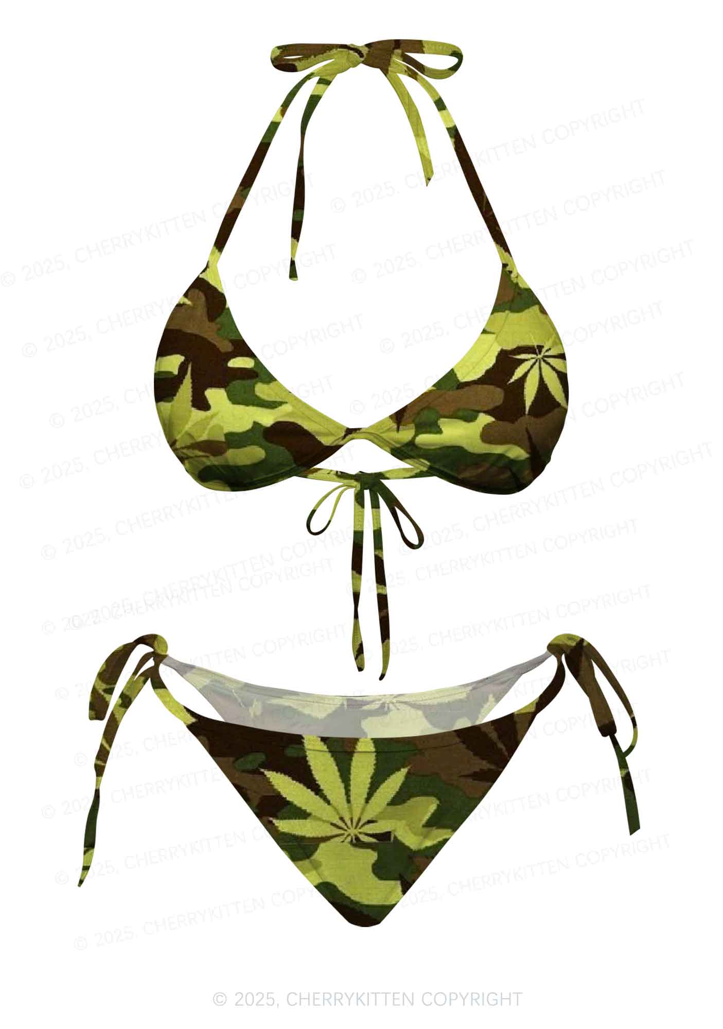 Camouflage Leaf Y2K Print Bikini Set Cherrykitten