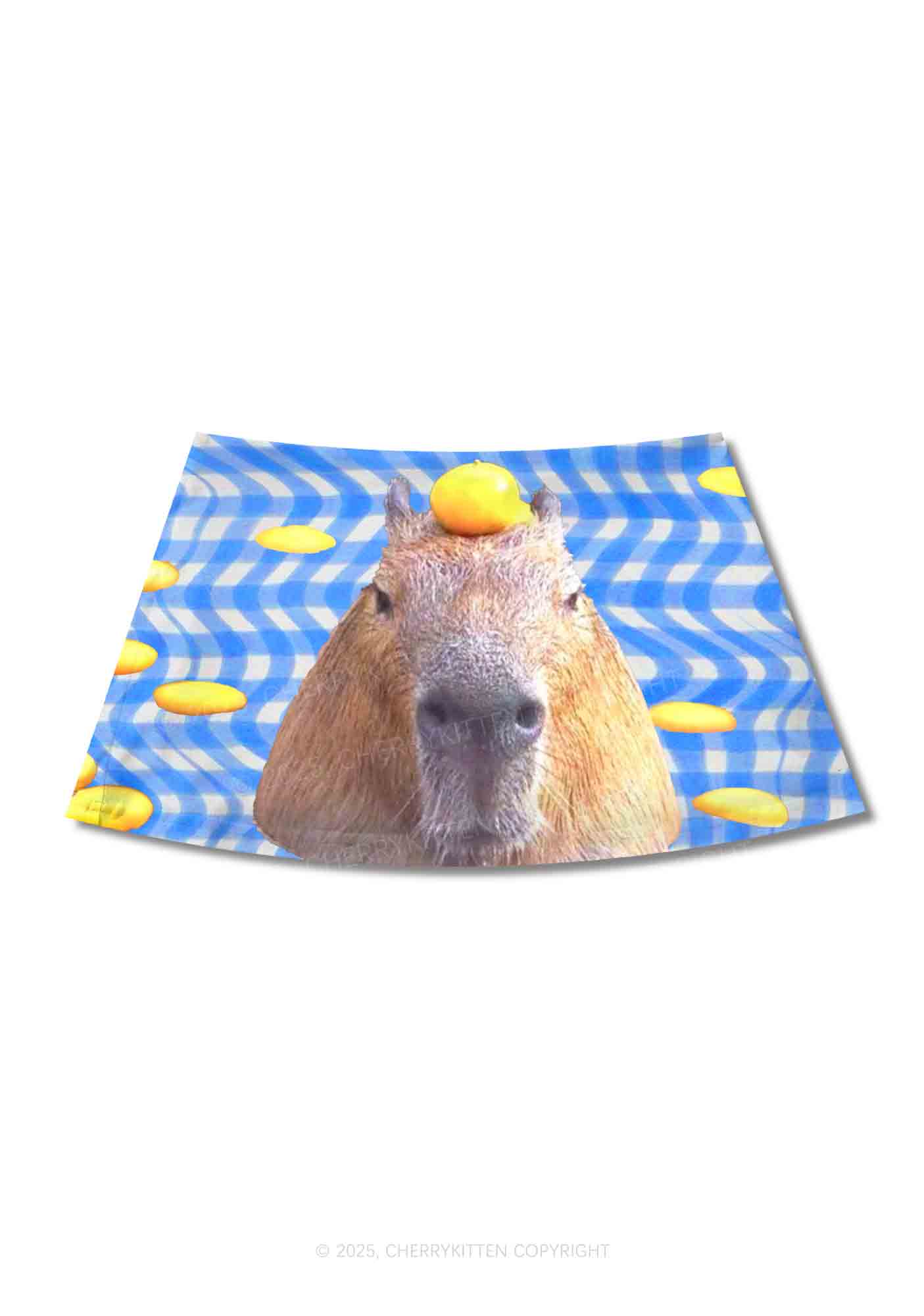 Capybara Lemon Hat Y2K Print Mini Skirt Cherrykitten