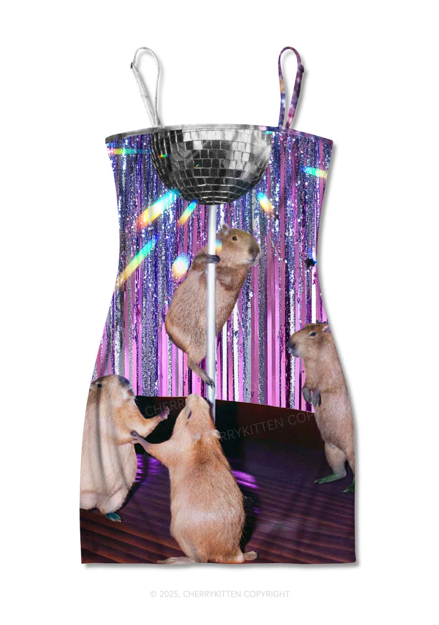 Capybaras Disco Night Y2K Print Slip Dress Cherrykitten