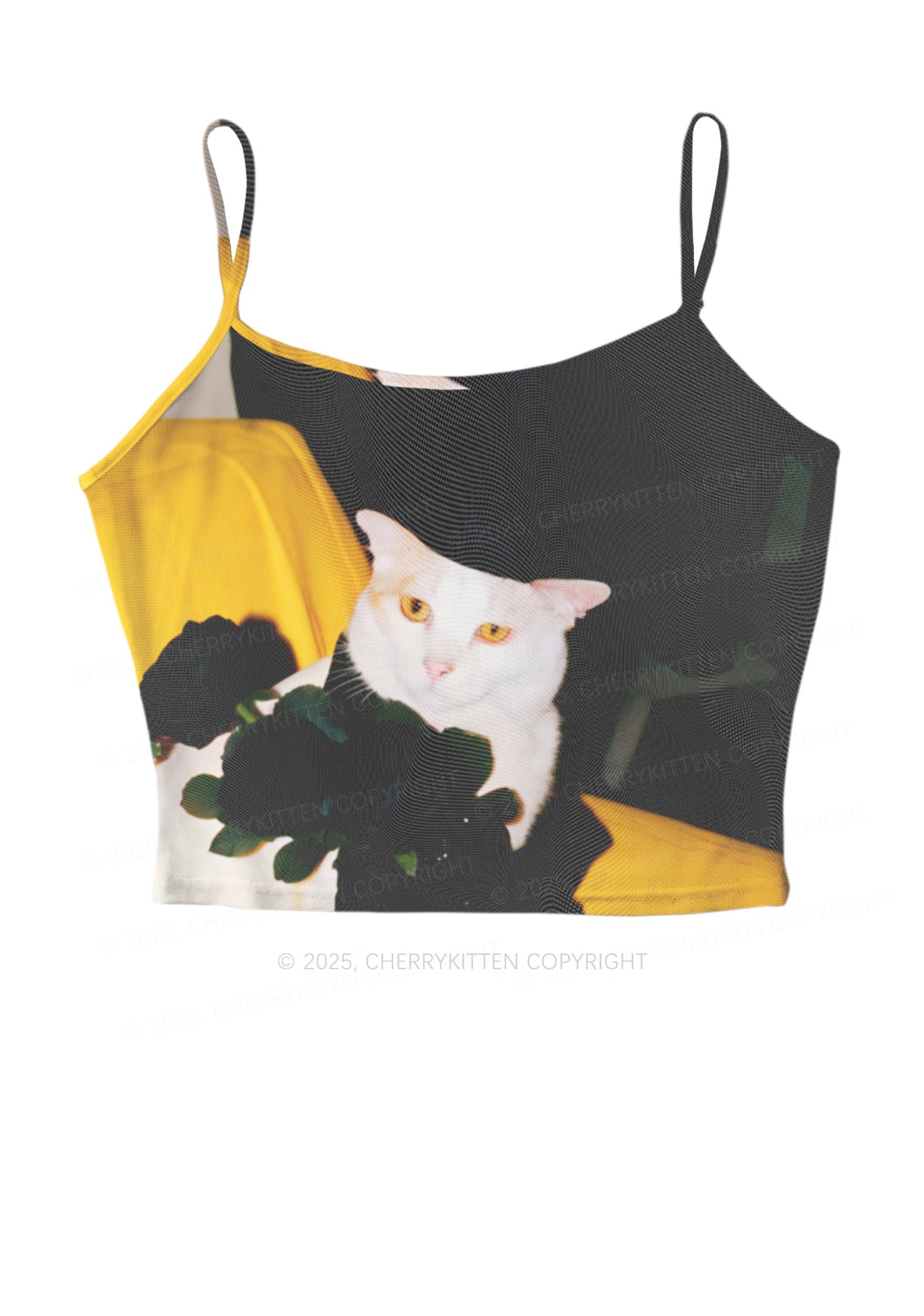 Cat With Black Roses Y2K Mesh Cami Tank Cherrykitten