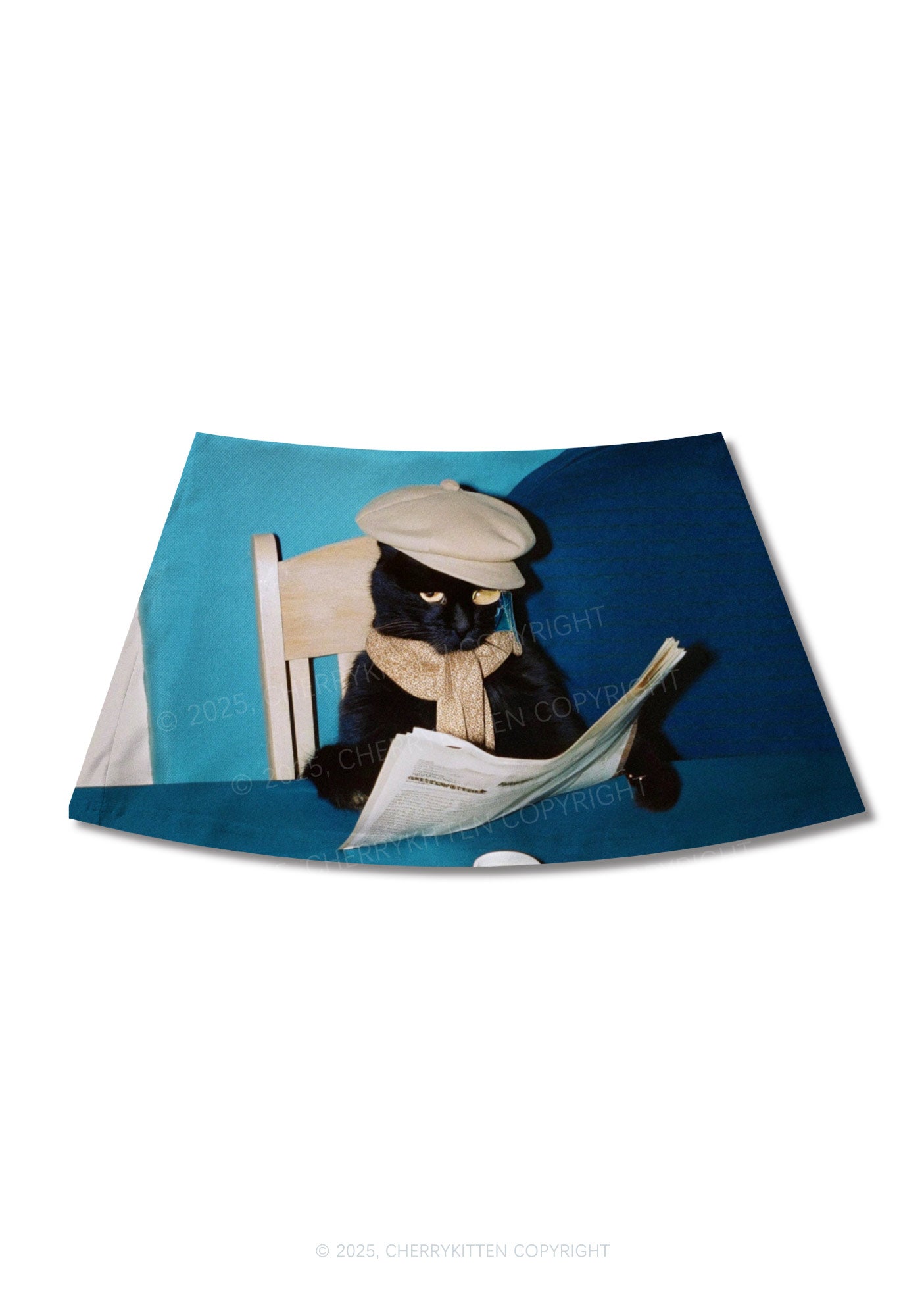 Cats Coffee Break Y2K Print Mini Skirt Cherrykitten