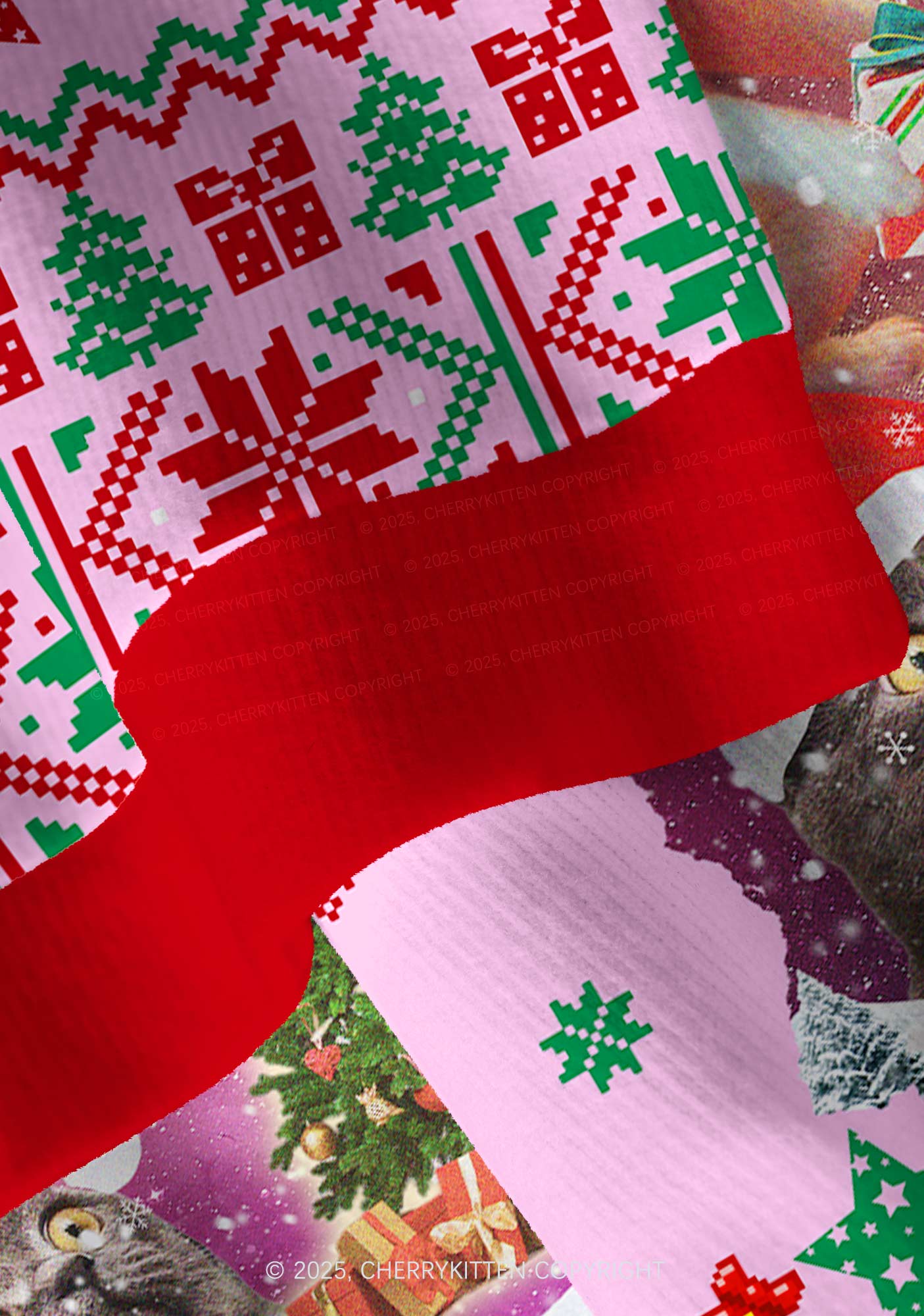 Cats Gift Y2K Christmas Cardigan Knit Sweatshirt Cherrykitten