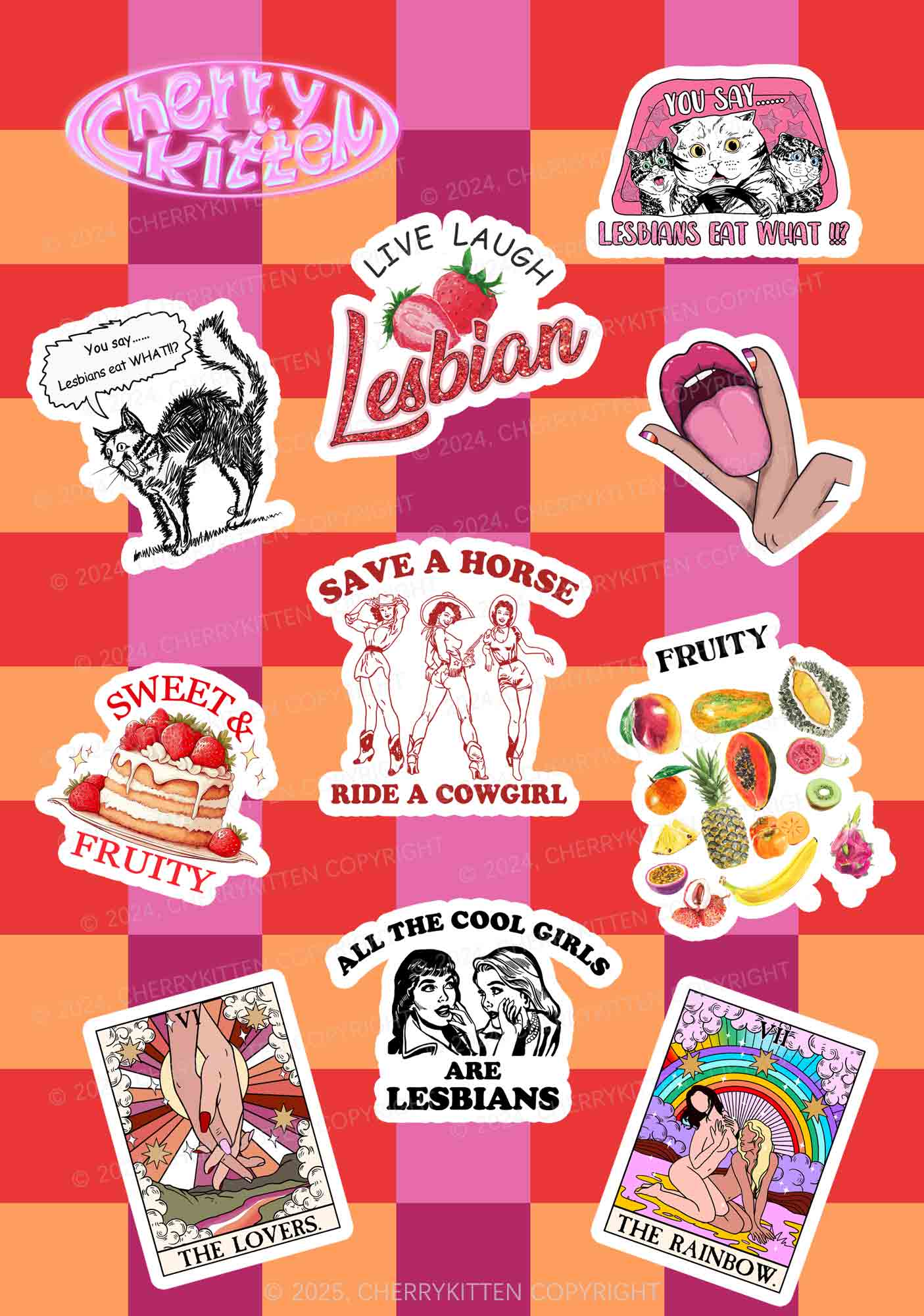 Cherrykitten Lesbian Art Y2K Stickers Pack Of 10