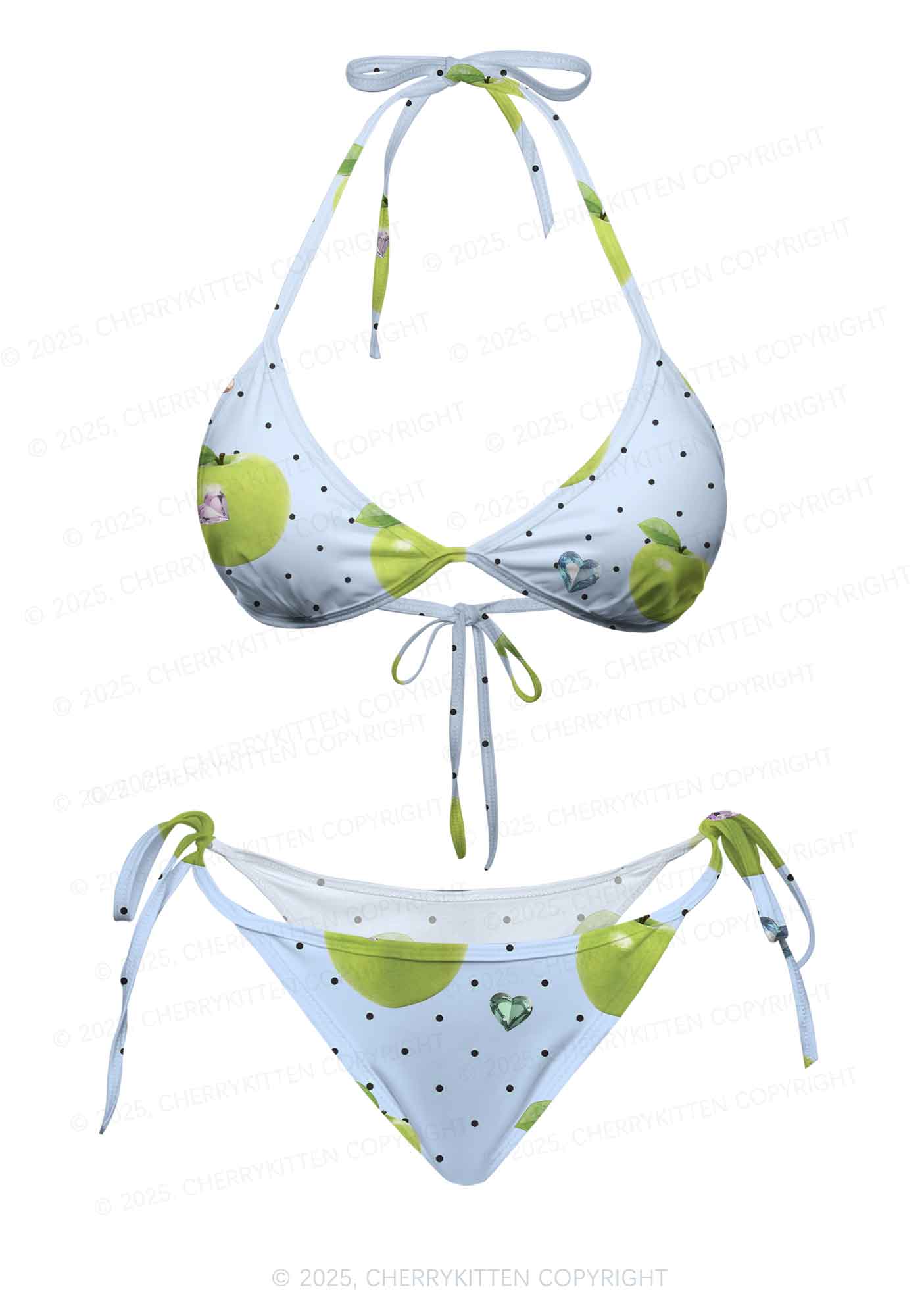 Chic Green Apple Y2K Print Bikini Set Cherrykitten