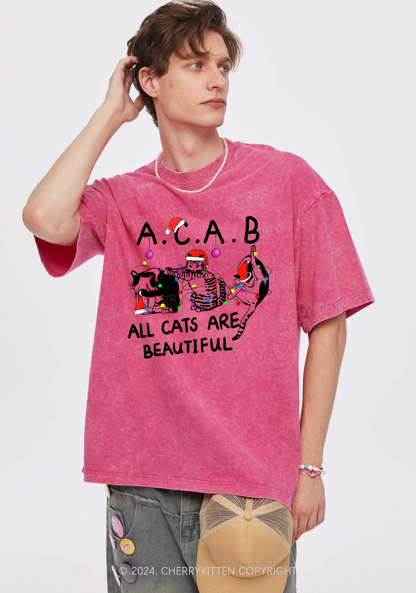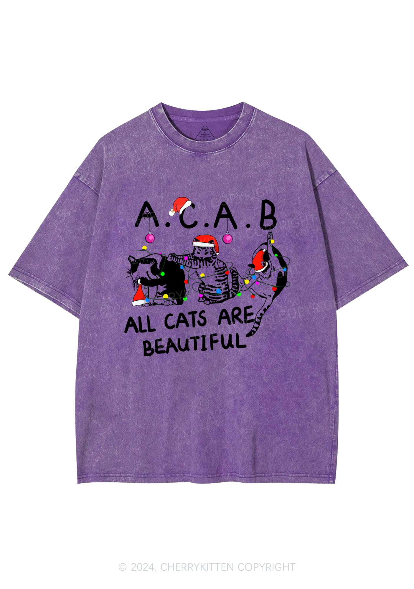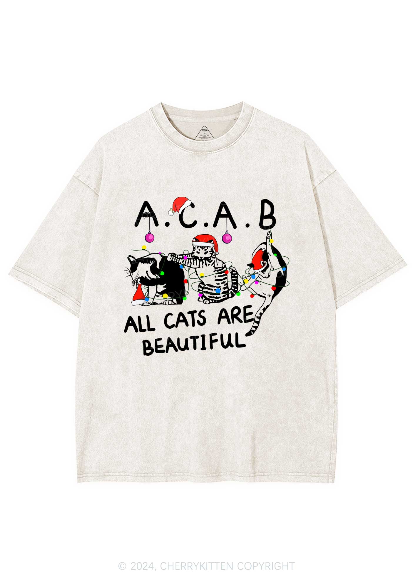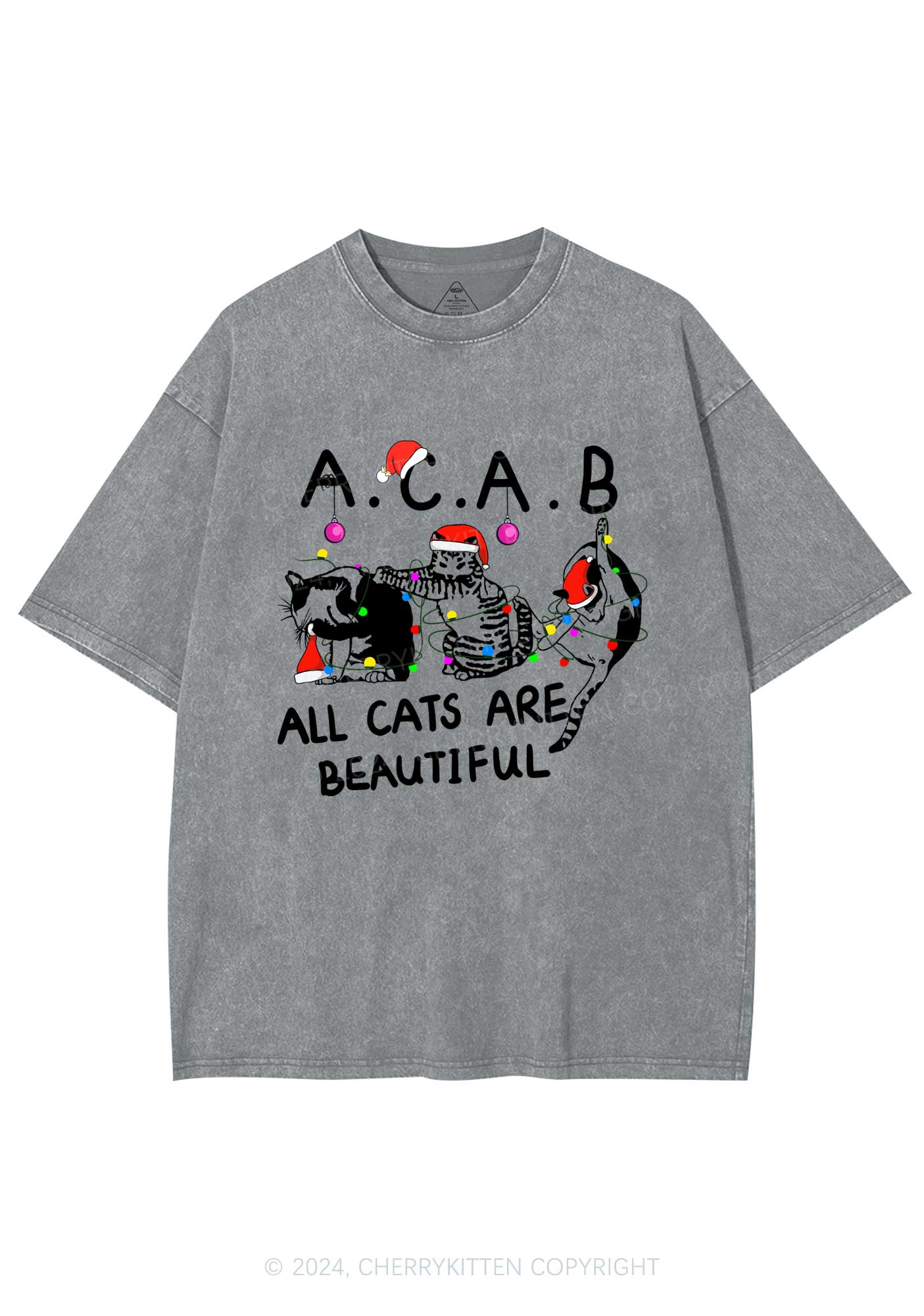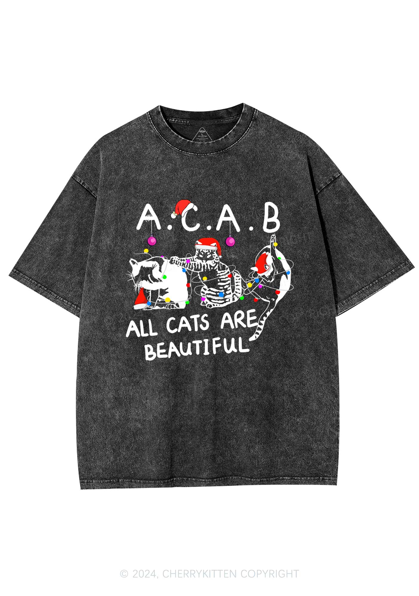 Christmas ACAB Cats Y2K Washed Tee Cherrykitten