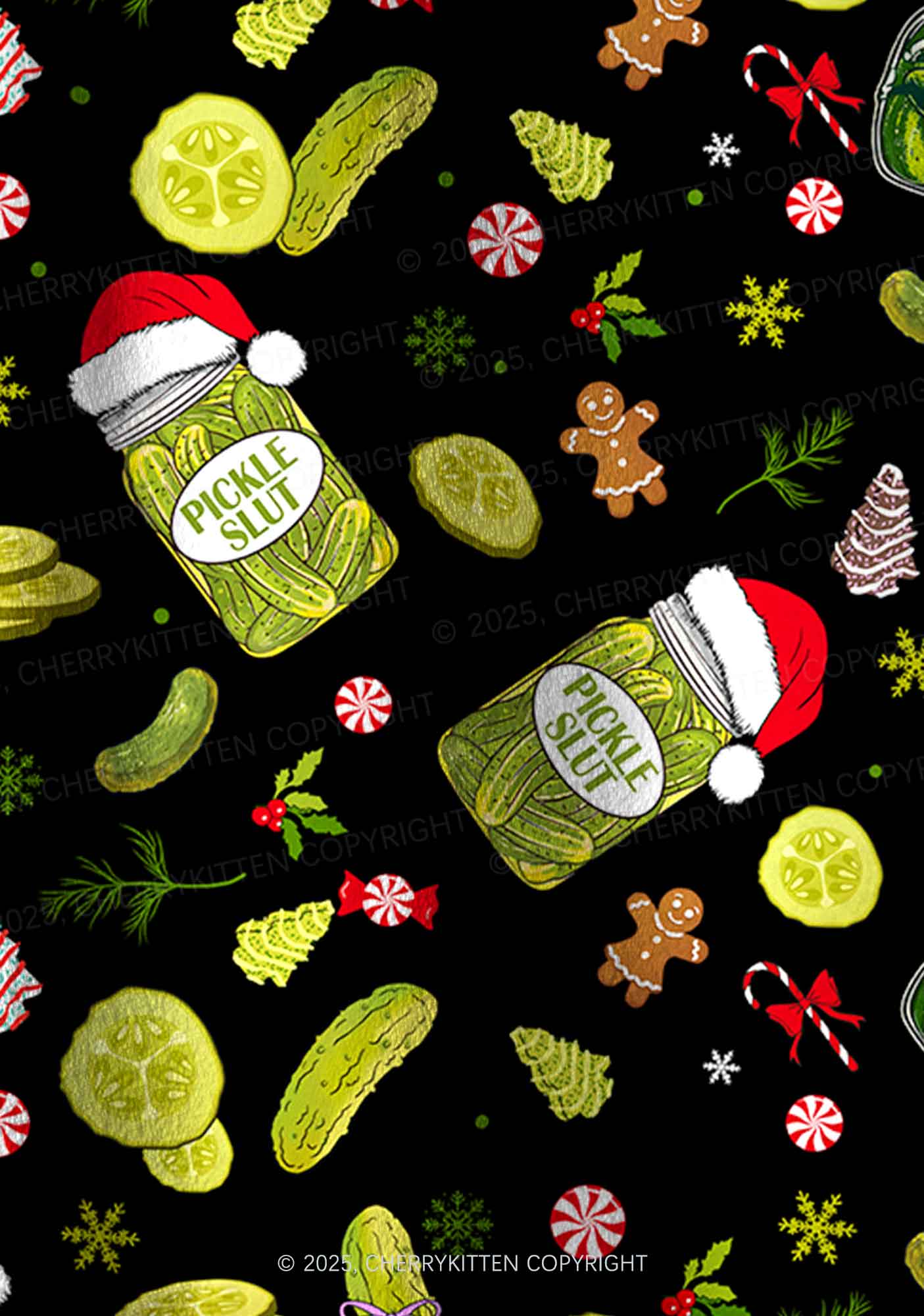 Christmas Black Santa Pickle Y2K Fleece Long Sleeve Pajama Set Cherrykitten