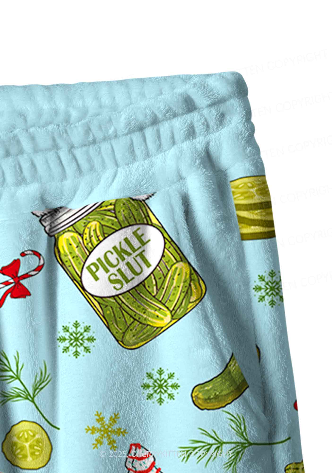 Christmas Green Santa Pickle Y2K Fleece Long Sleeve Pajama Set Cherrykitten