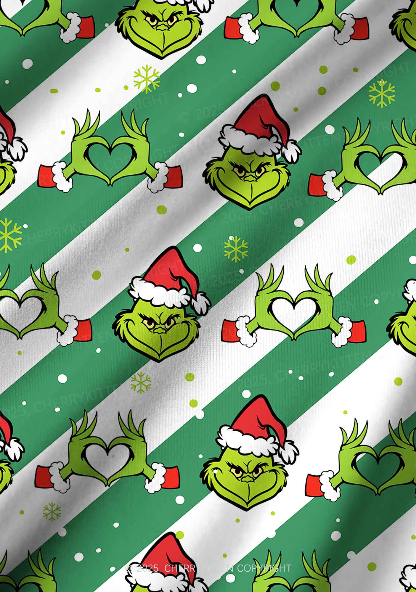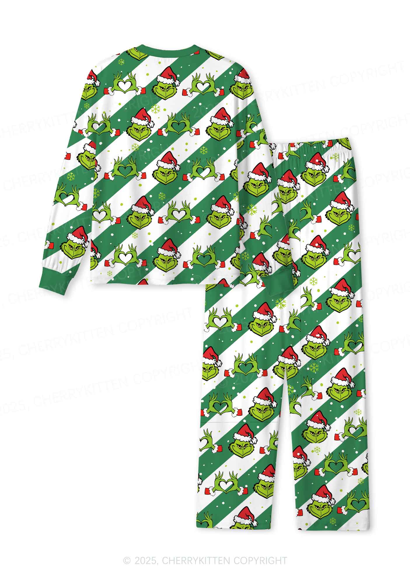 Christmas Whoville Heart Hands Y2K Print Long Sleeve Pajama Set Cherrykitten