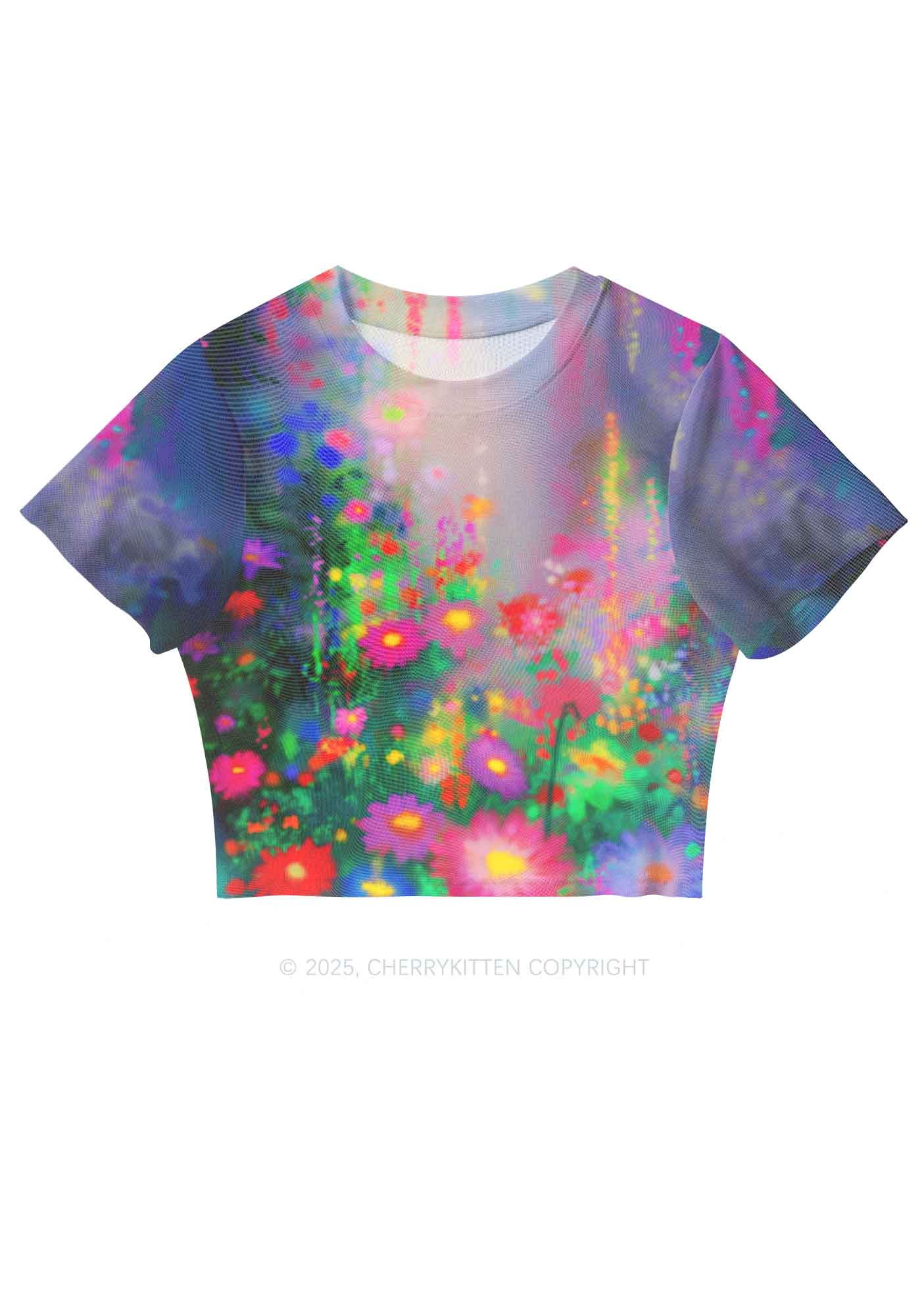 Colorful Daisies Y2K Mesh Crop Top Cherrykitten