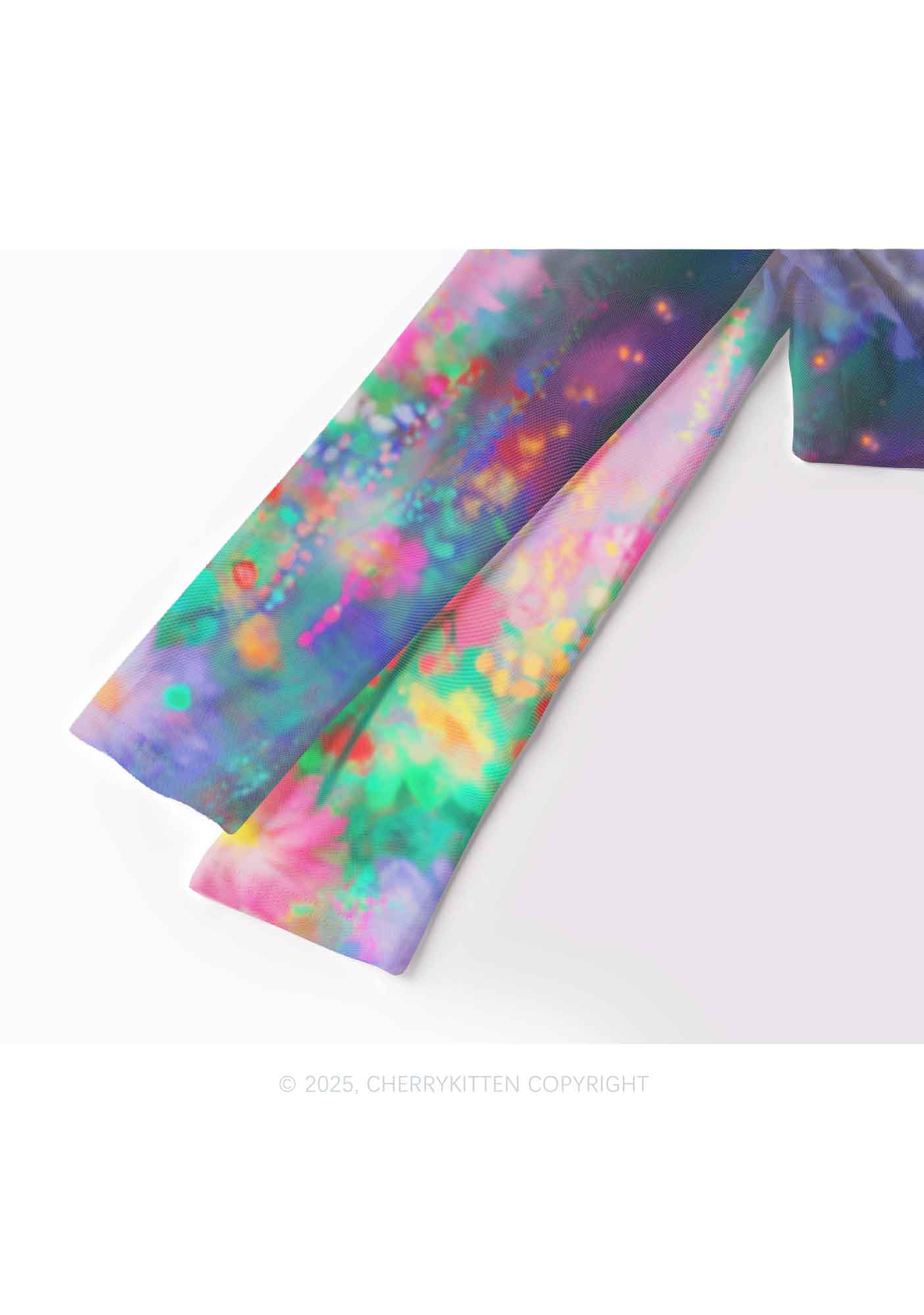 Colorful Daisies Y2K Mesh Long Sleeve Crop Top Cherrykitten