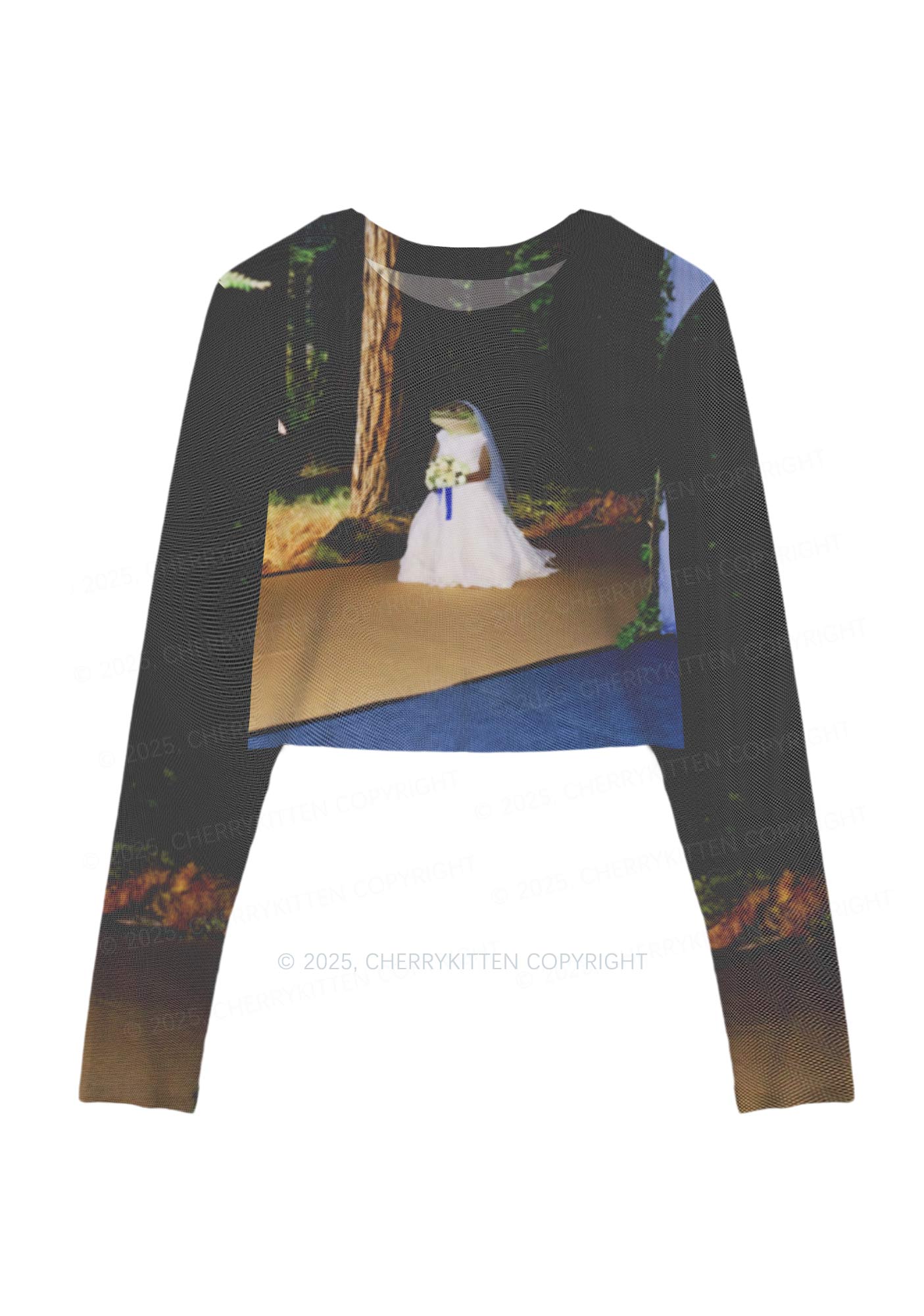 Crocodile Bride Y2K Mesh Long Sleeve Crop Top Cherrykitten