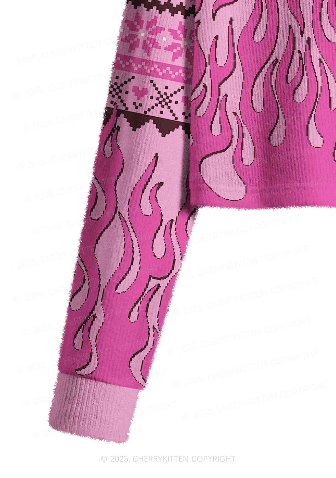 Cunting Season Y2K Christmas Crop Knit Sweatshirt Cherrykitten