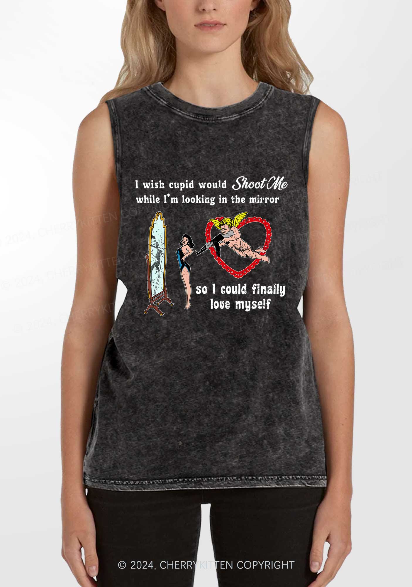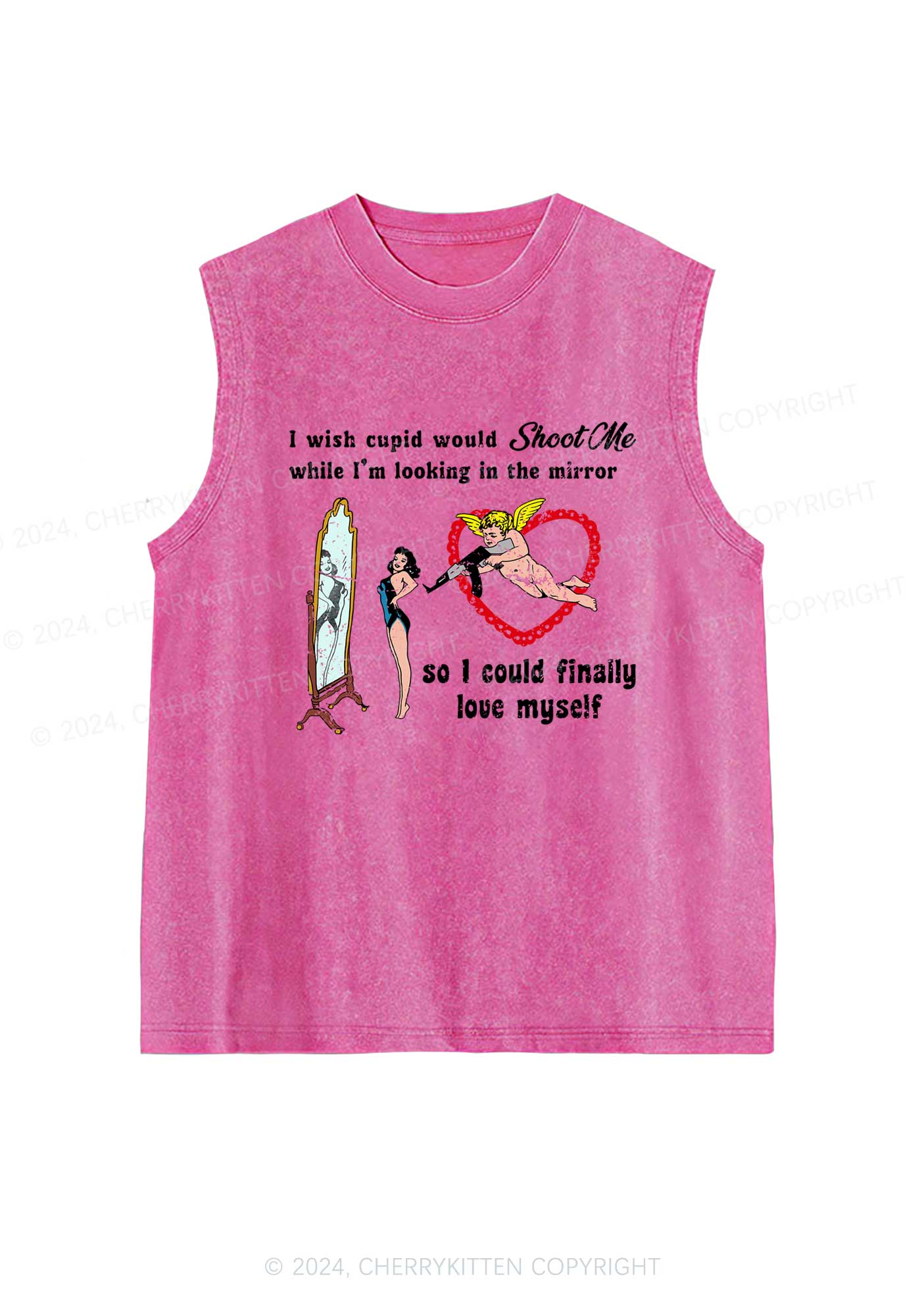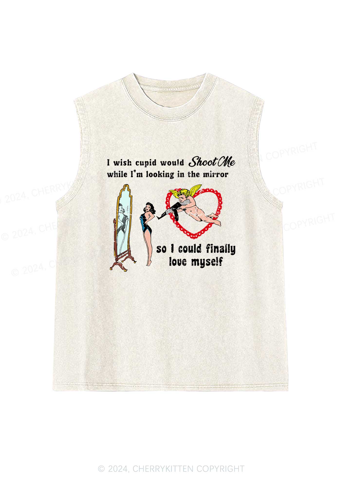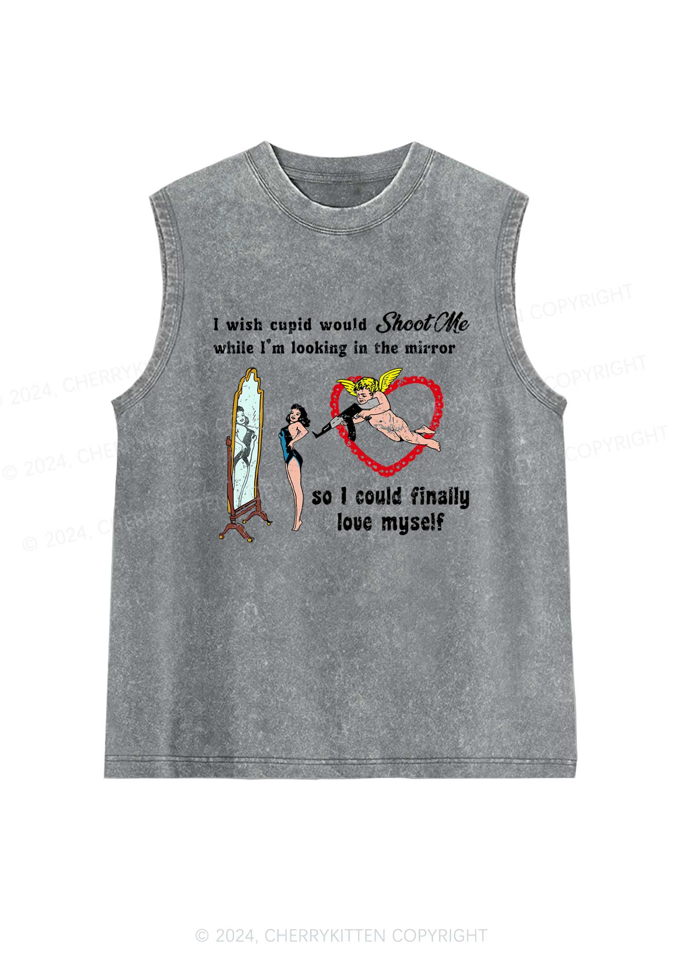 Cupid Would Shoot Me Y2K Washed Tank Cherrykitten