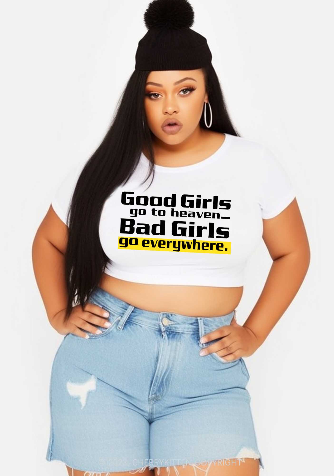 Curvy Bad Girls Go Everywhere Y2K Baby Tee Cherrykitten