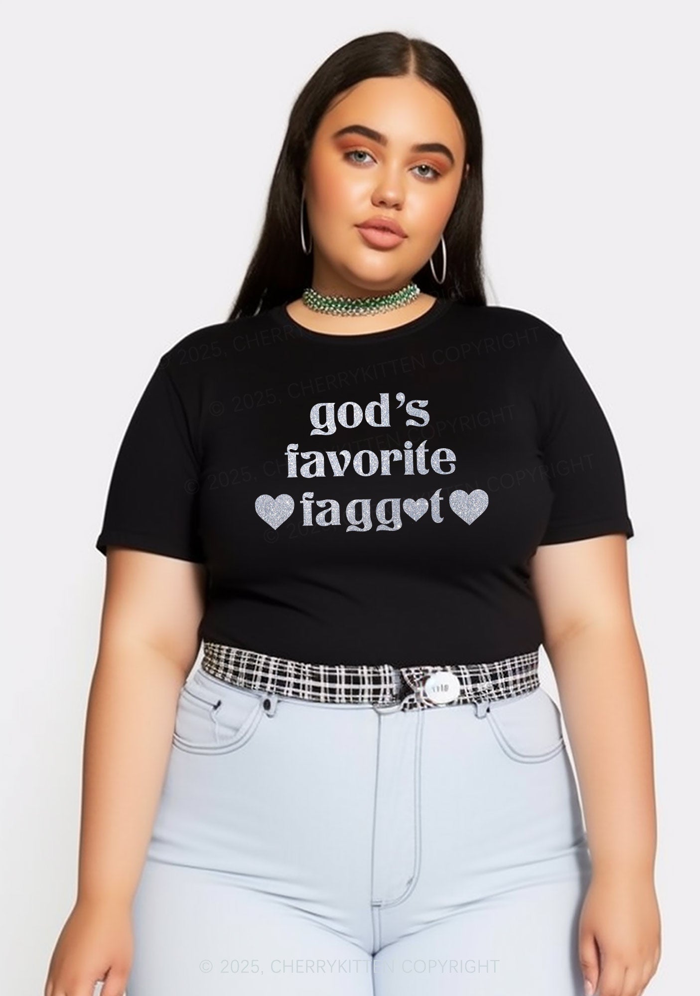Curvy Glitter Gods Favorite Faggot Pride Y2K Baby Tee Cherrykitten